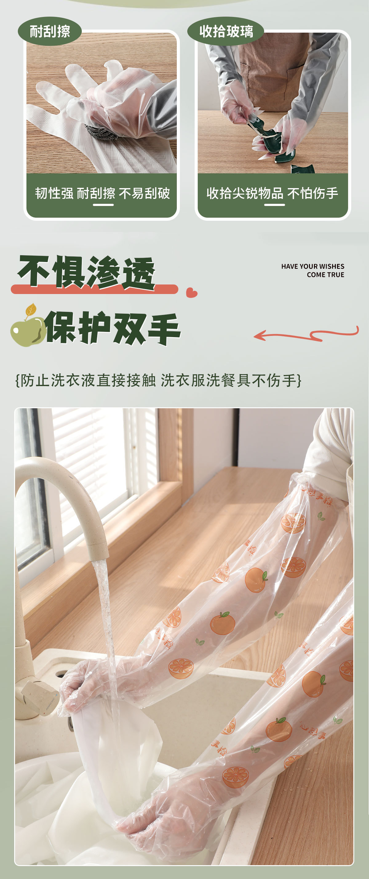 一次性护臂手套防水松紧束口厨房家用洗碗清洁加厚长臂家务手套