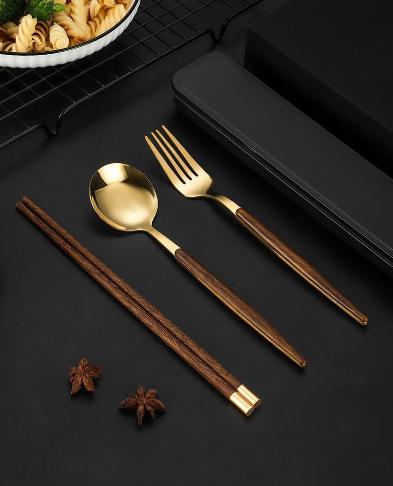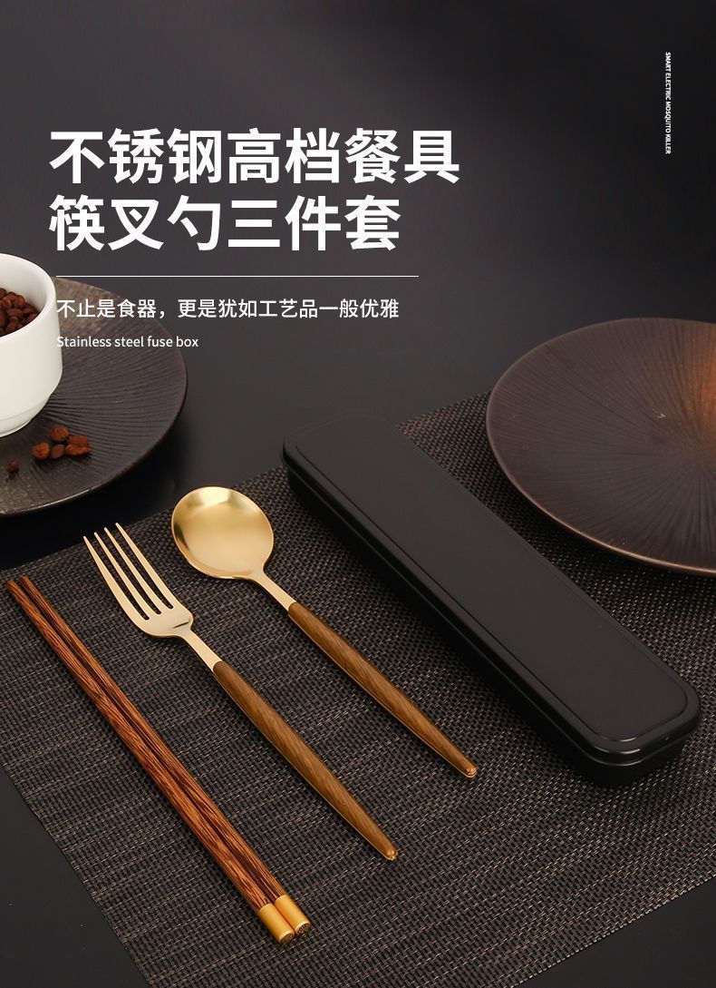 三件套上班族筷子勺子便携式筷勺叉旅游食堂餐具跨境工厂外贸批发