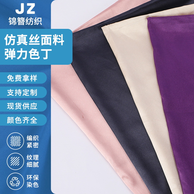現物の高級ファッション弾力性のある色丁はシルクの生地を模倣しています。