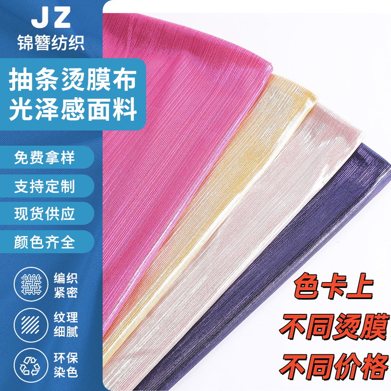 新しいハイエンドストライプホットフィルム布ファッション光沢のある生地ソフトで軽いスカートシャツ衣類生地卸売
