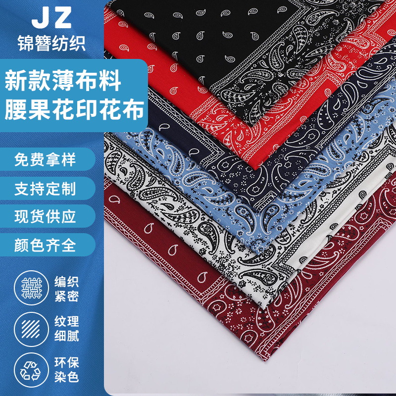 新作カシューナッツ柄プリント薄手生地シングルレイヤーヘッドスカーフシルクスカーフ服スカート生地衣料品スカーフ生地卸売