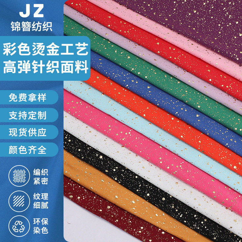 高弹针织面料烫花 烫金工艺布料彩色星星图案连衣裙服装材料批发
