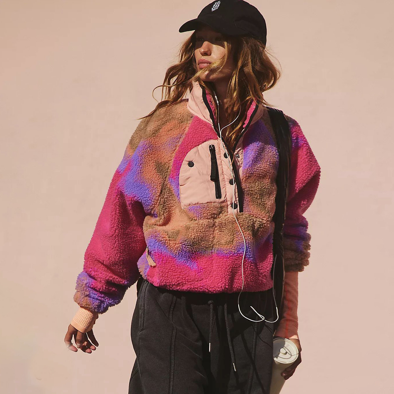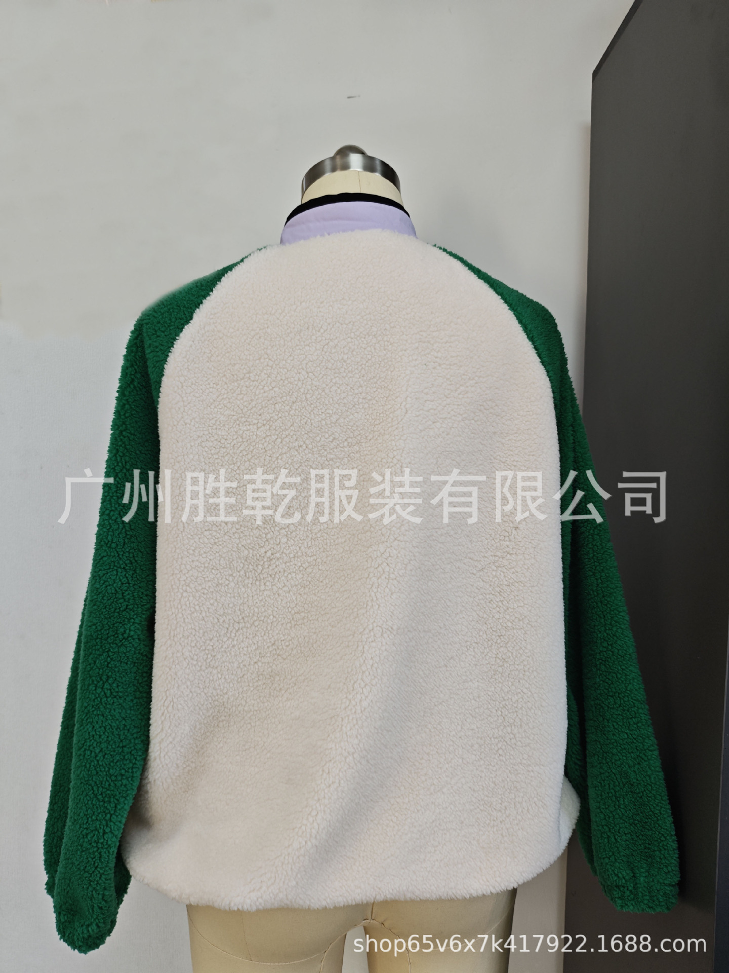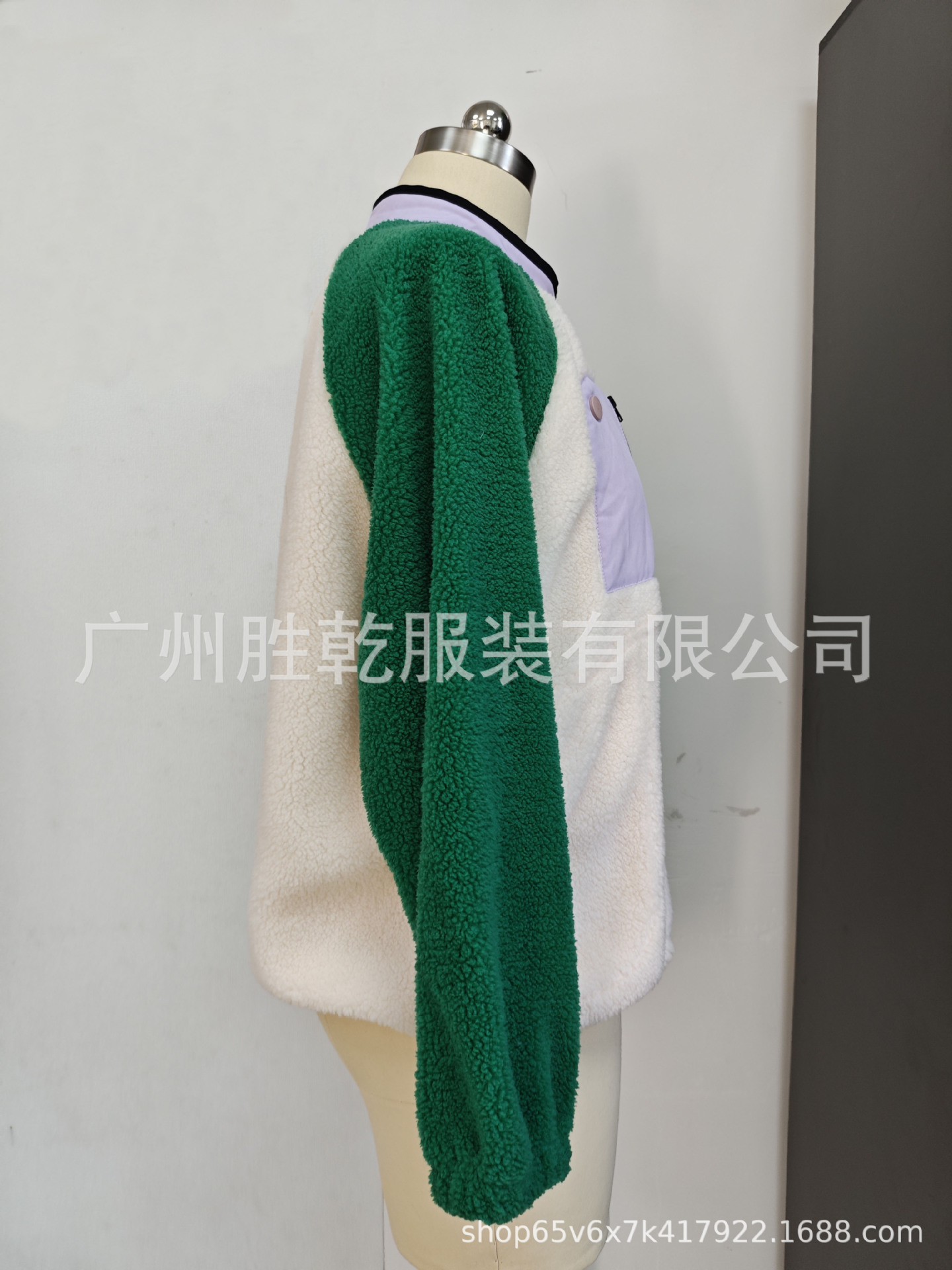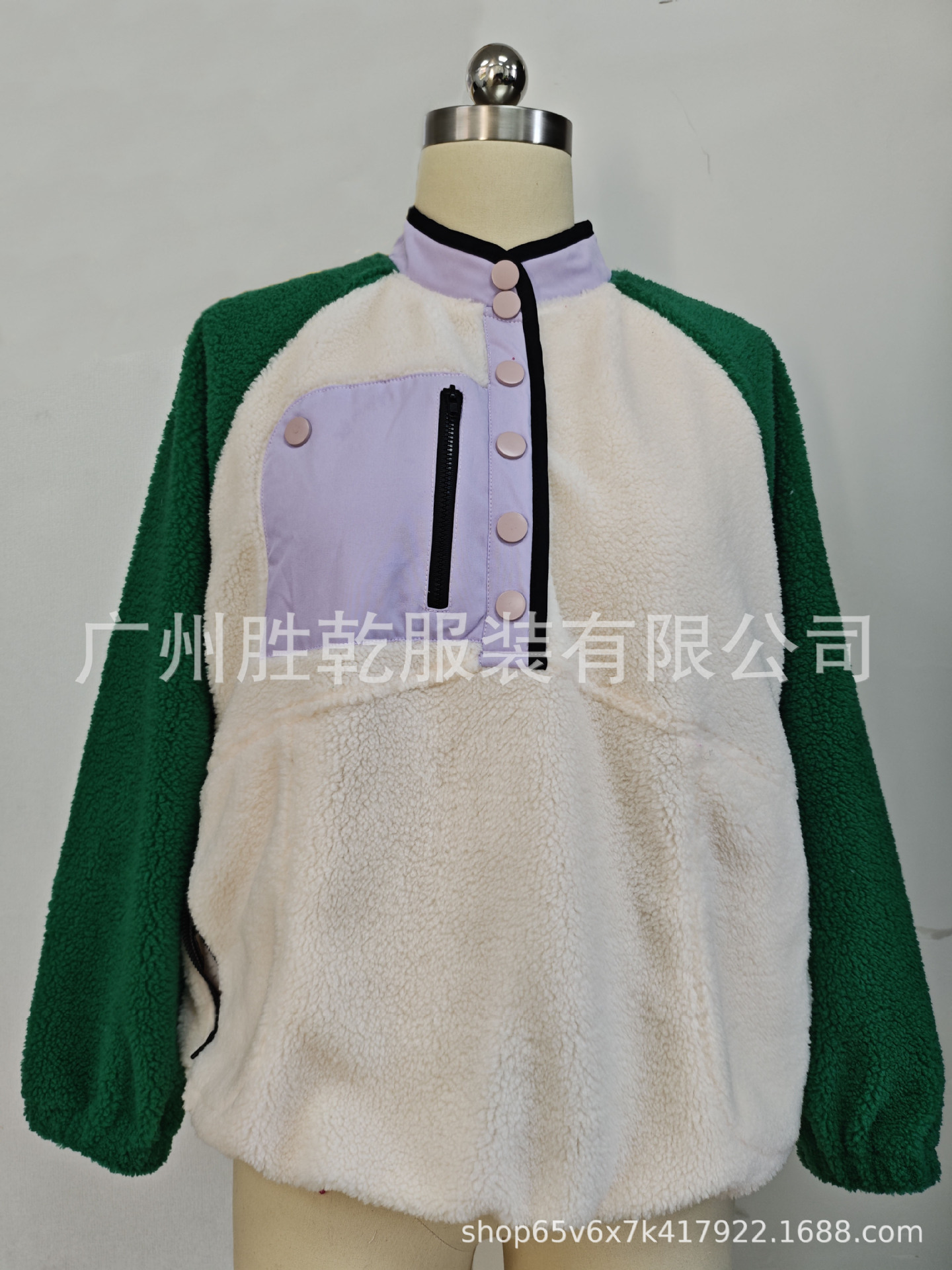 2025欧美跨境外贸毛绒套头短款宽松冬季上衣立领设计拼色拉链口袋