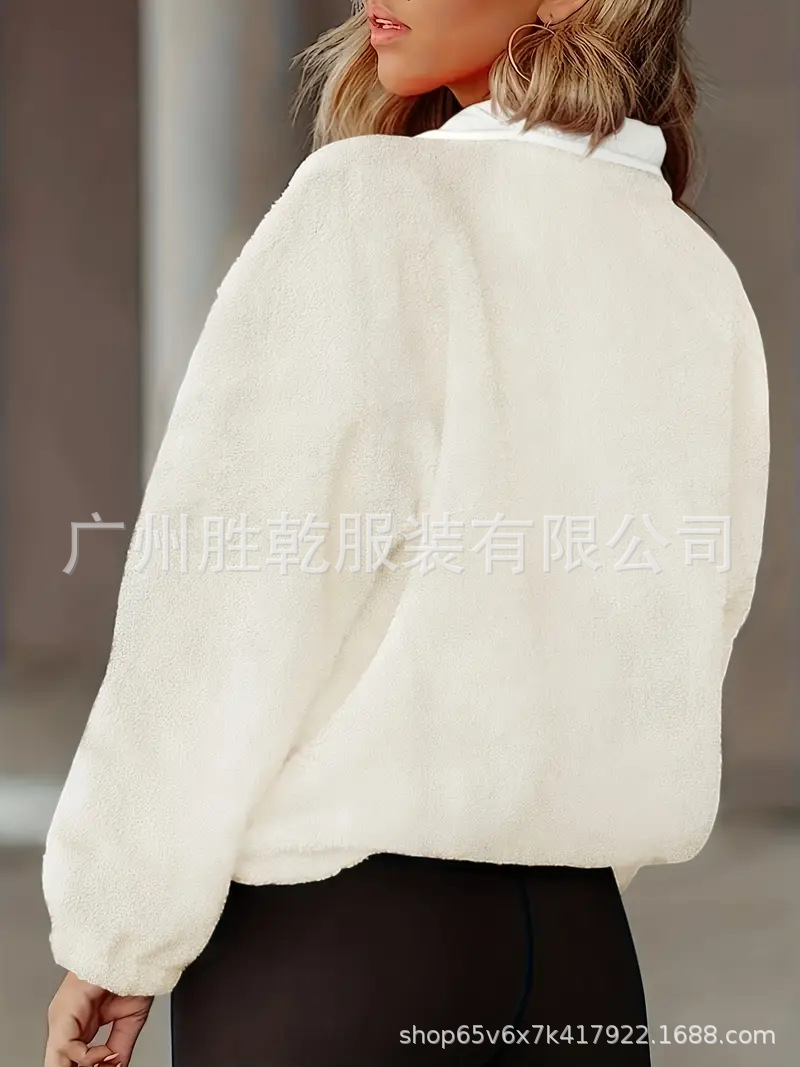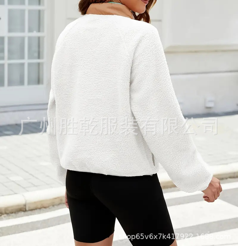 2025欧美跨境秋冬新款女装摇粒绒外套纯色运动休闲卫衣夹克上衣女