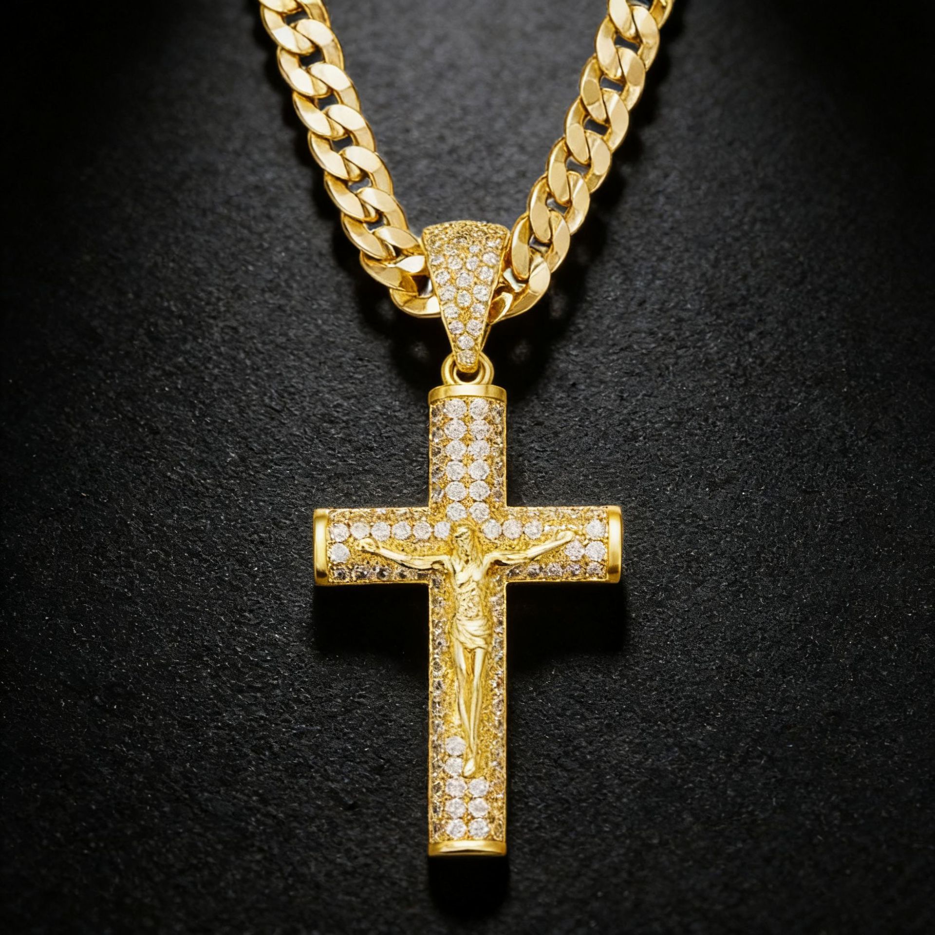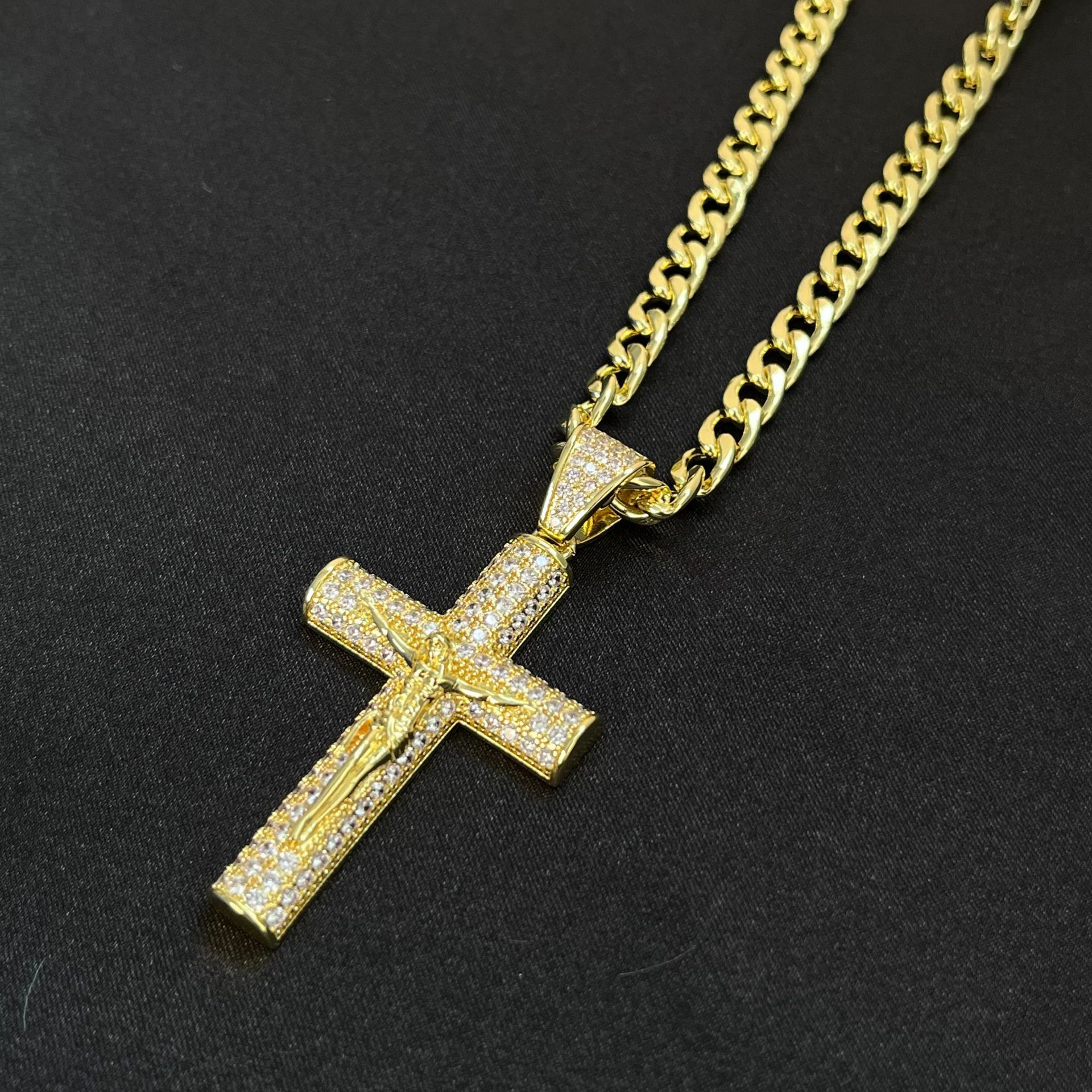 跨境爆款镶钻大号十字架镀金锆石古巴链项链轻奢简约嘻哈时尚饰