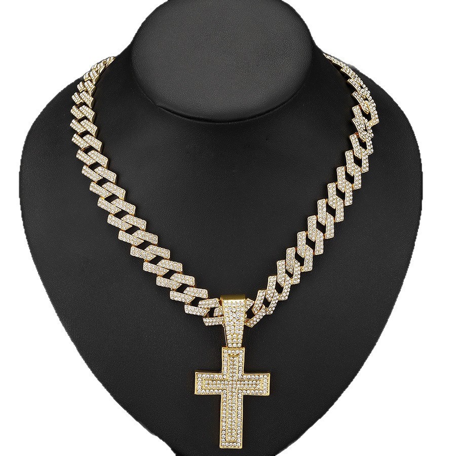 跨境镶钻大号十字架镀金满钻古巴链项链加吊坠嘻哈时尚首饰