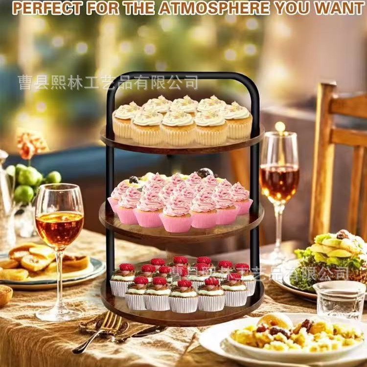 木製レトロデスクトップ収納ラック多層ケーキスタンドパーティーイベントクリームケーキスナックスナック整理ラック