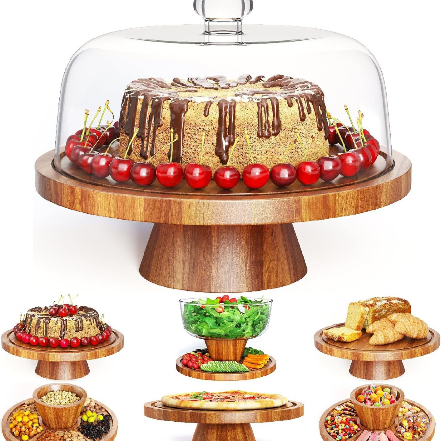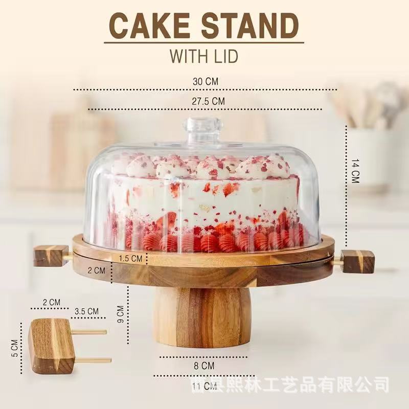 现货木质蛋糕盘实木高脚水果熟食盘带盖甜品蛋糕展示架婚礼甜品架