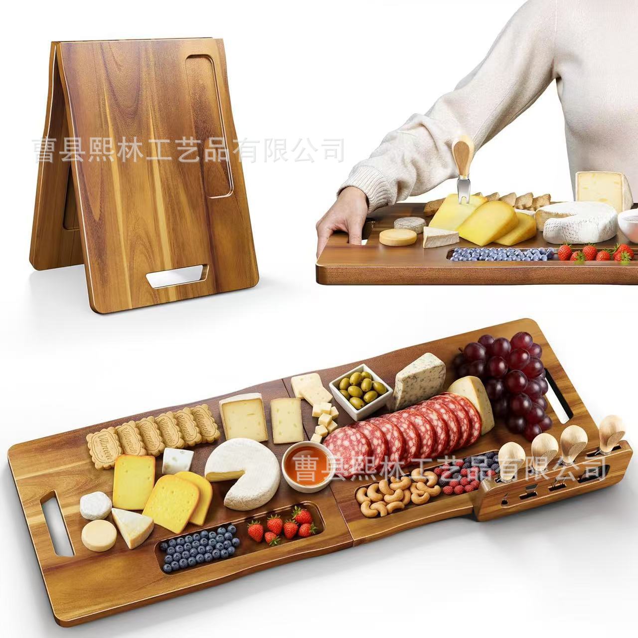 木製キッチンチーズトレイセット カッター付き スクエアキッチンまな板 屋外ピクニックパーティー用スナックトレイ