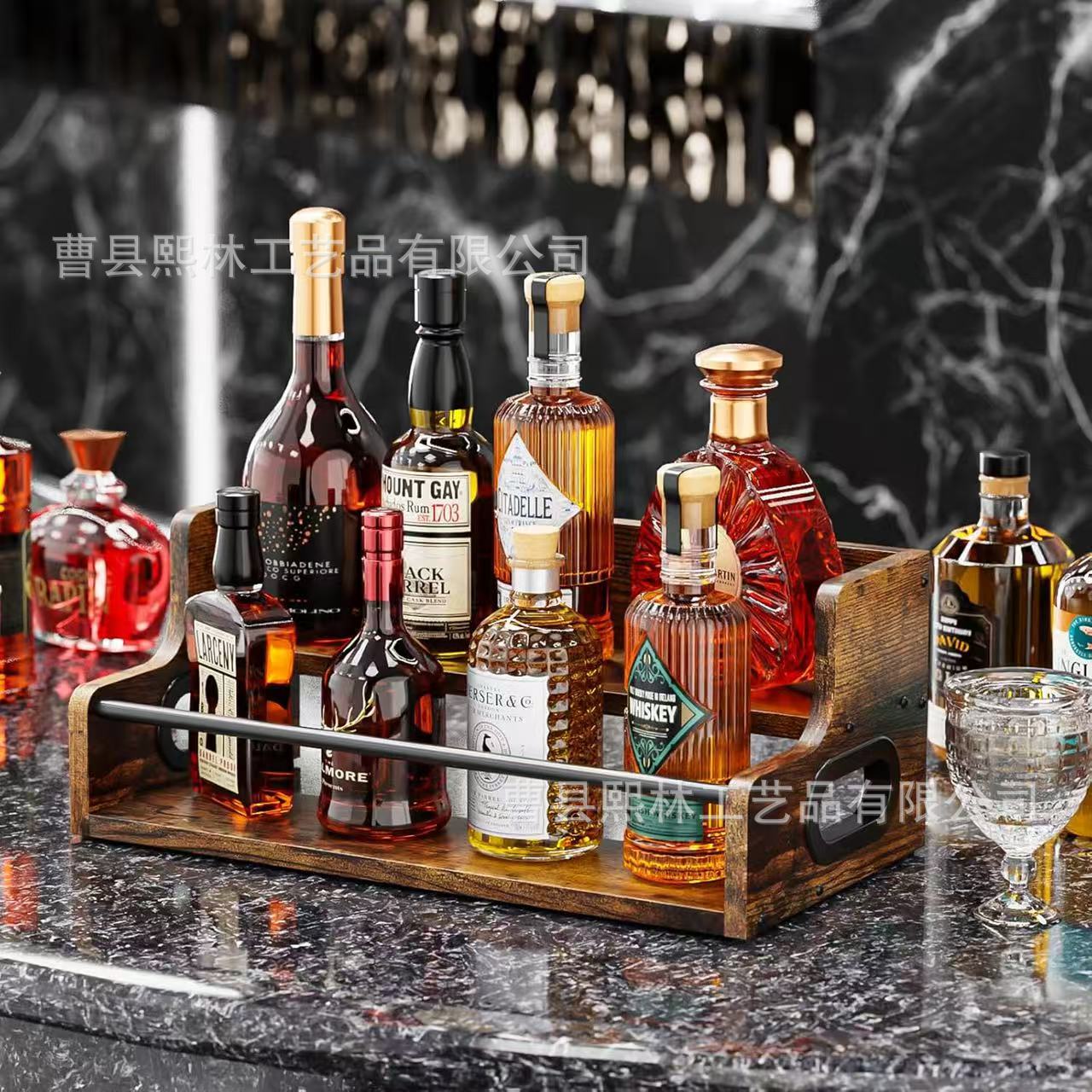 ヨーロッパの木製多機能赤ワインディスプレイラックキッチンスパイス収納ラック鉄と木材の組み合わせコーヒーバッグ収納ラック