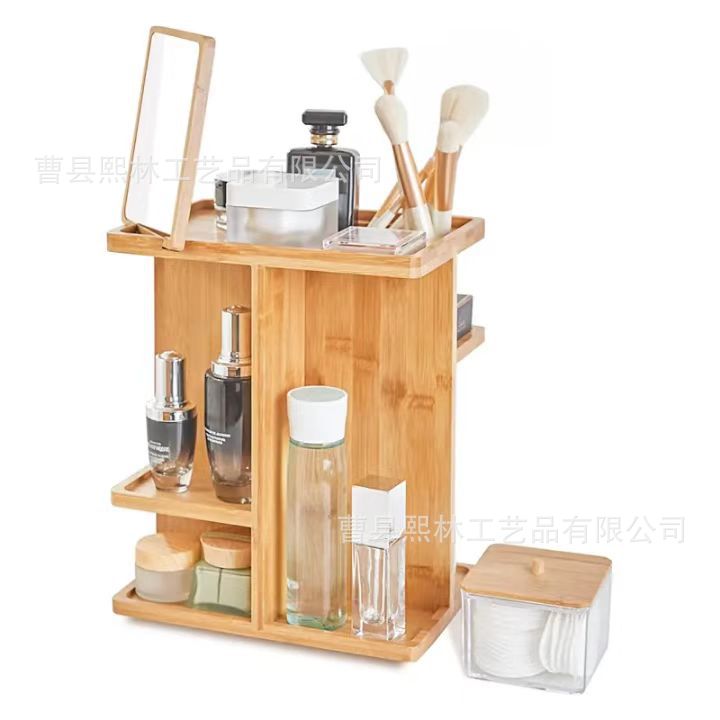 竹デスクトップ 360 度回転可能な化粧品収納ボックスクリエイティブミラー付きドレッシングテーブル多層整理ボックス