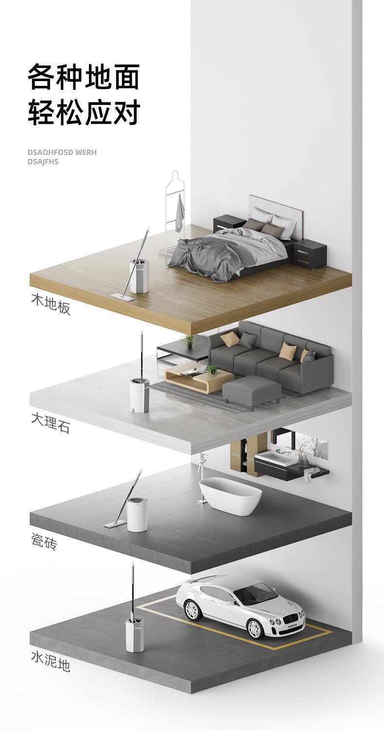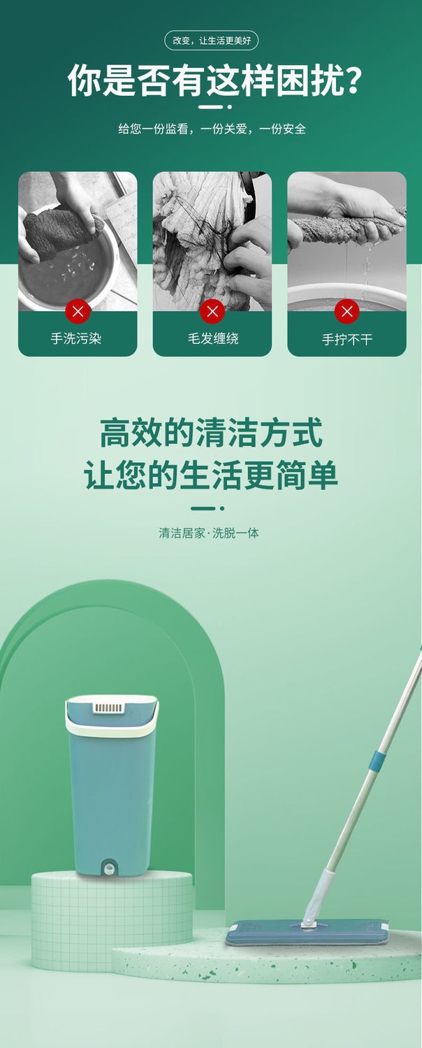 厂家新品刮刮乐系列正方形带桶拖把可家用拖地平板地把懒人免手洗