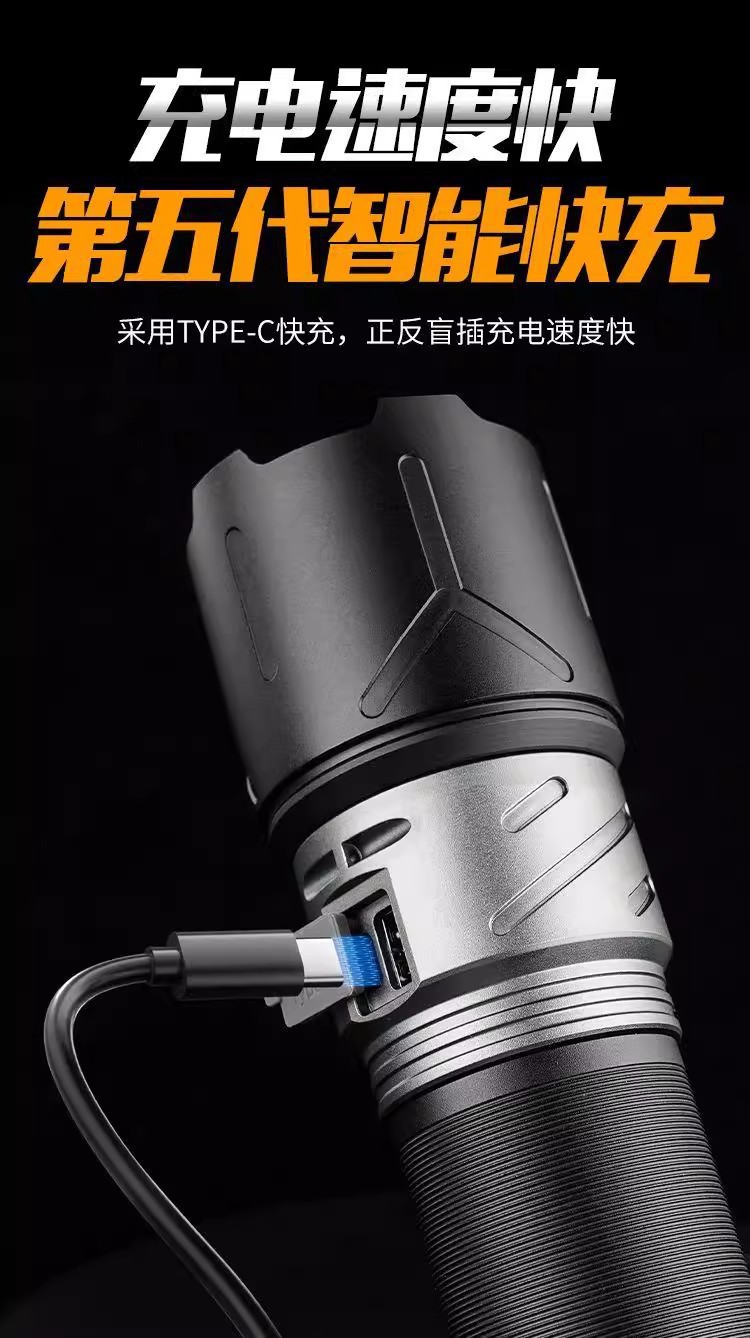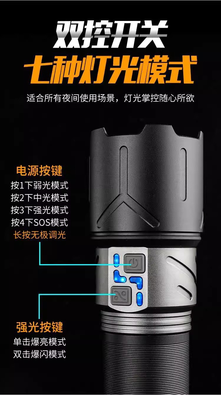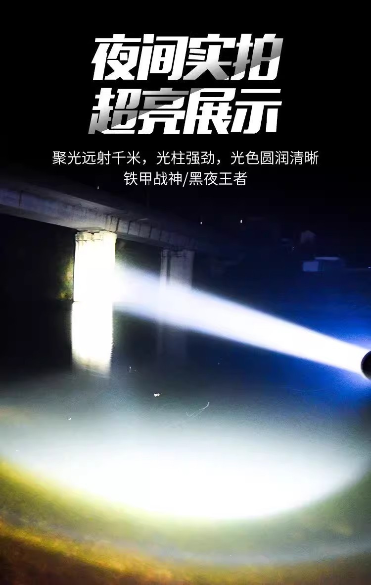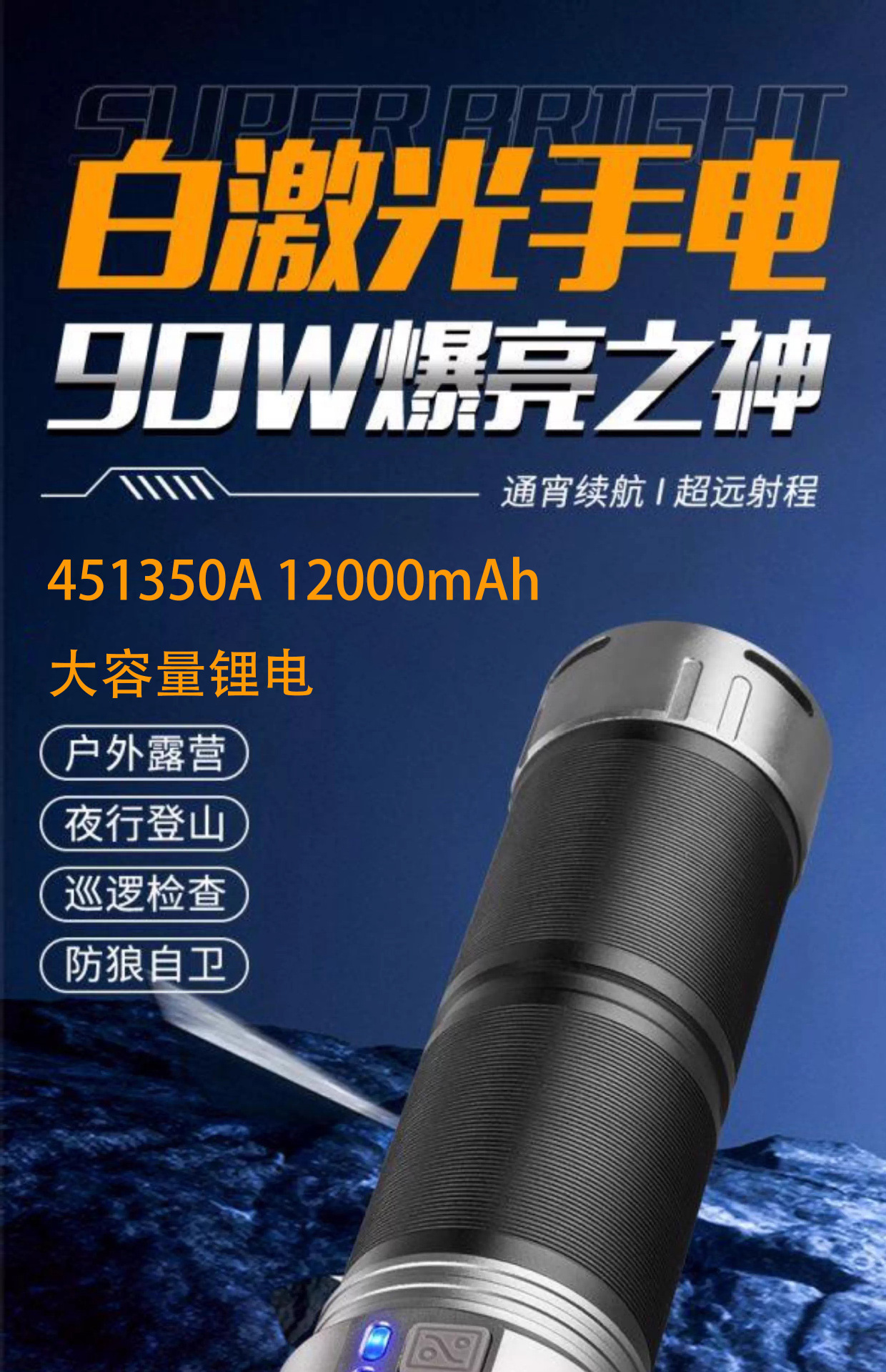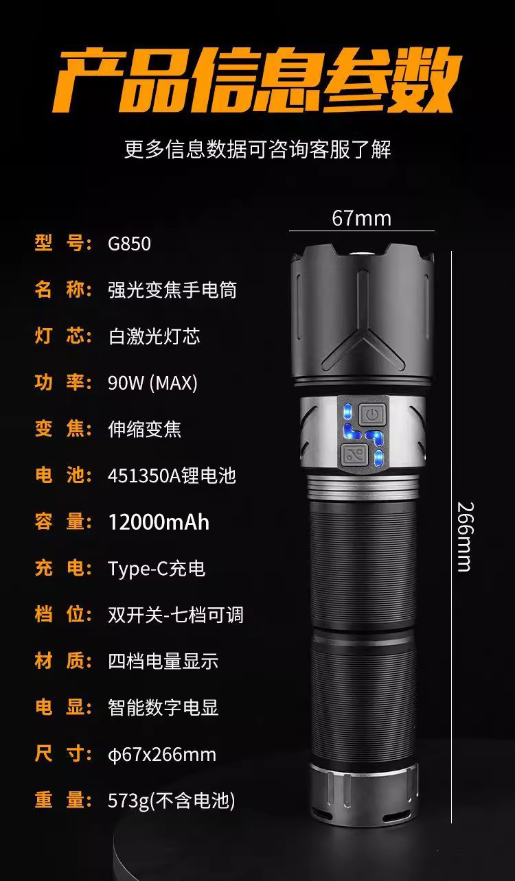 新款户外强光手电筒白激光远射可变焦无极调光铝合金超亮手电筒