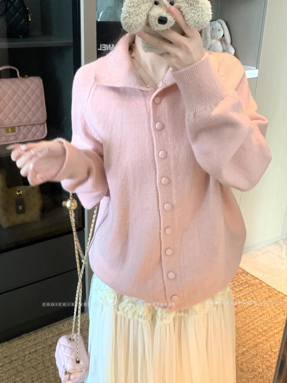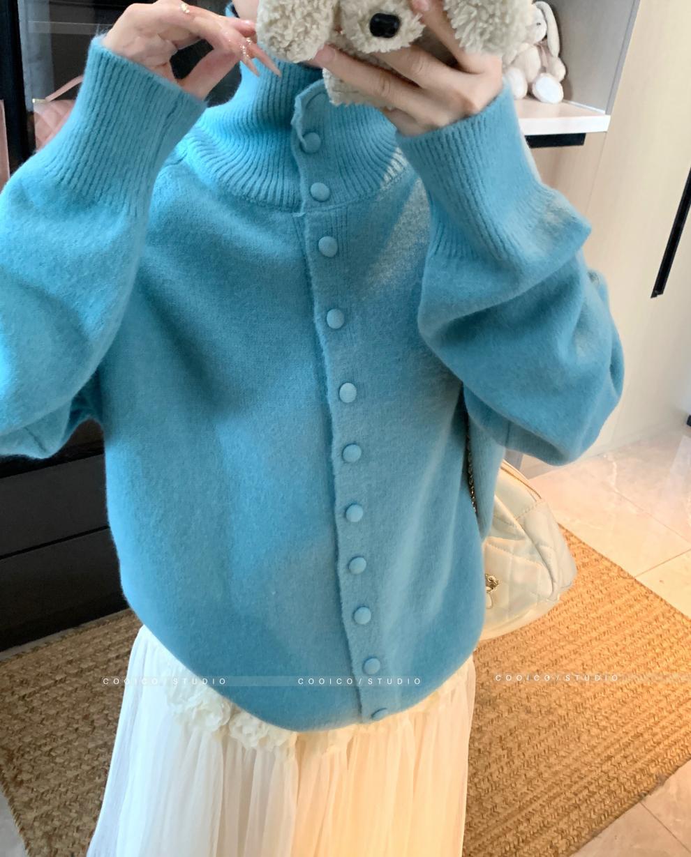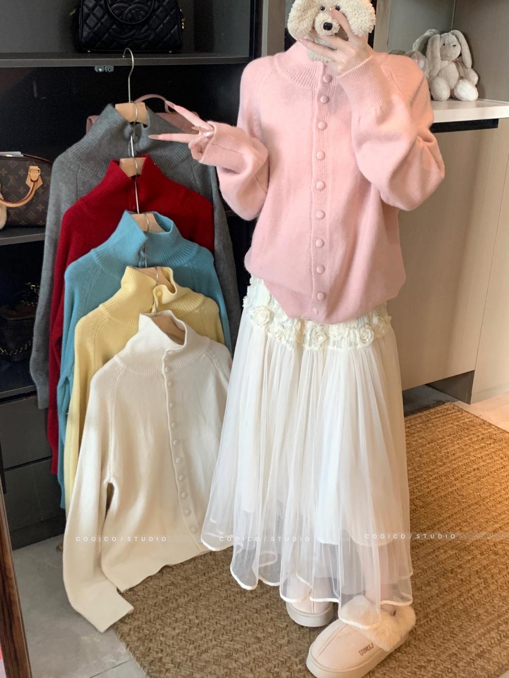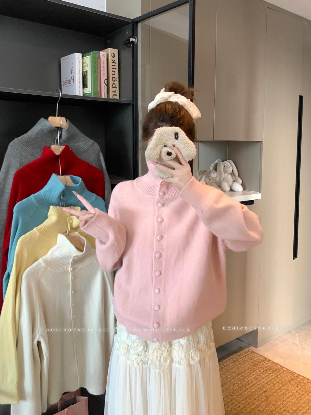 2025秋冬新款胖mm大码女甜美多巴胺彩色纽扣宽松针织毛衣上衣