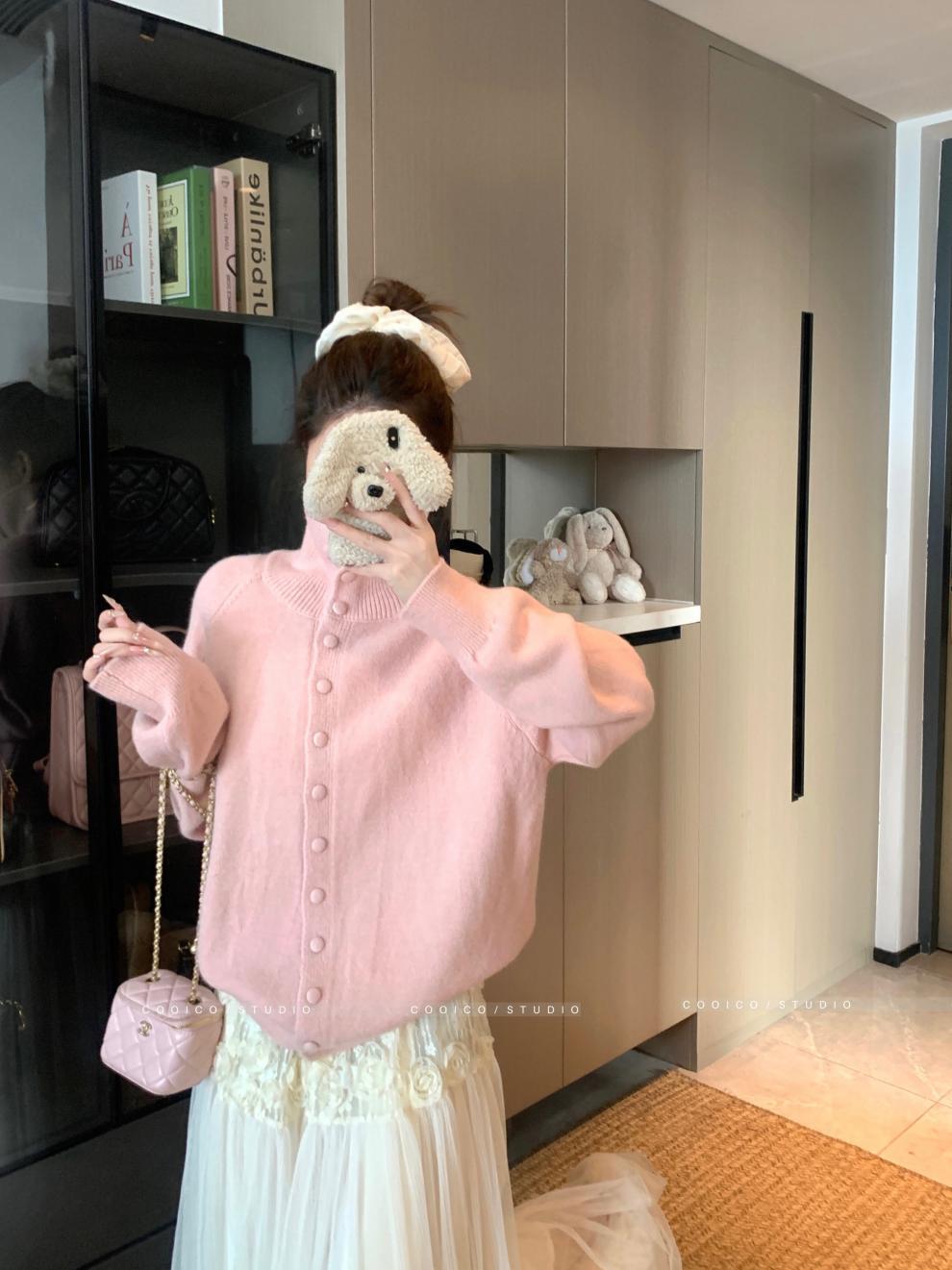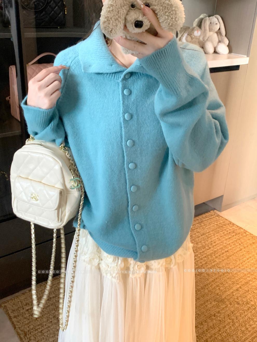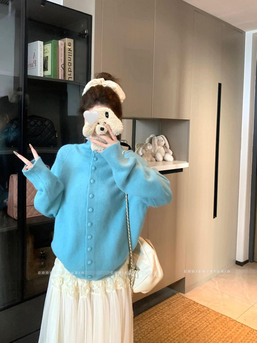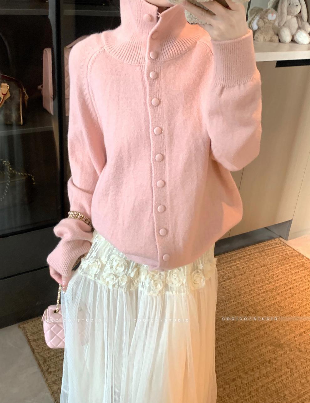 2025秋冬新款胖mm大码女甜美多巴胺彩色纽扣宽松针织毛衣上衣