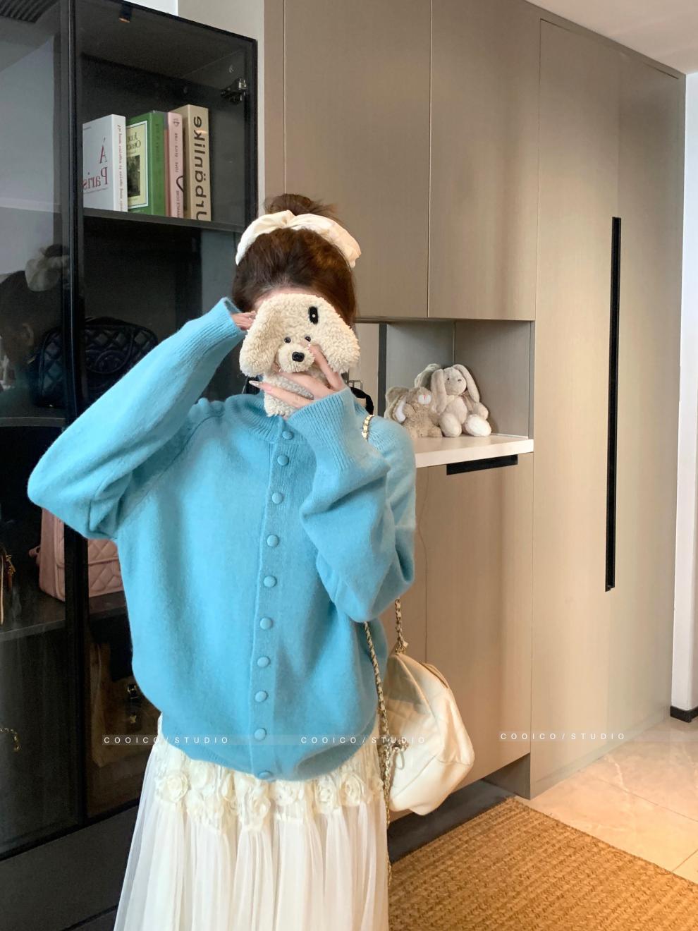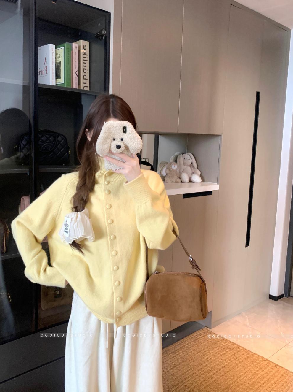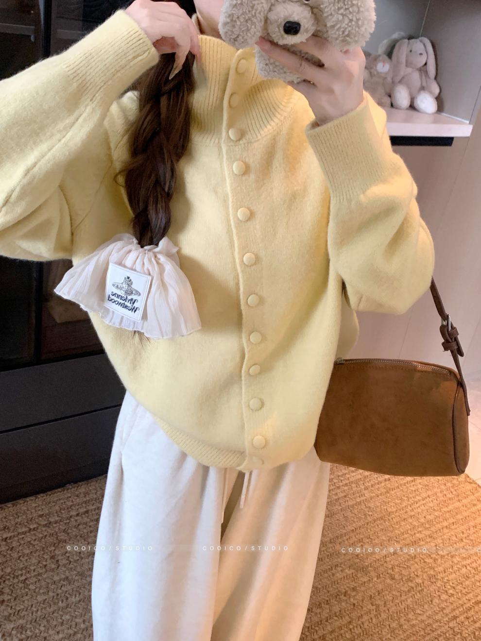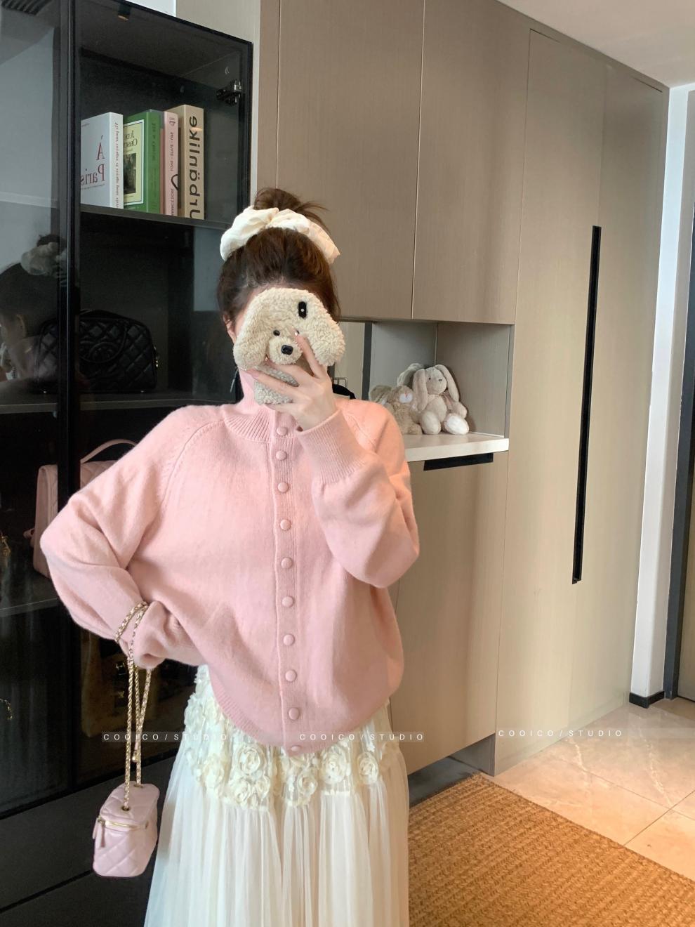 2025秋冬新款胖mm大码女甜美多巴胺彩色纽扣宽松针织毛衣上衣