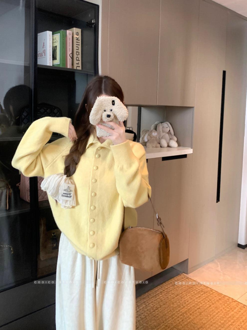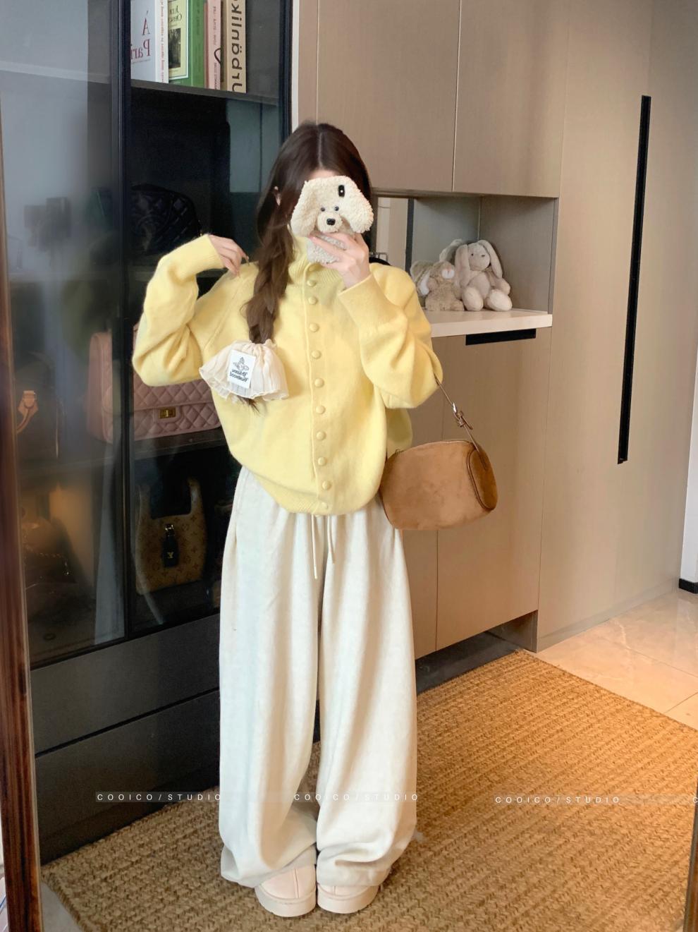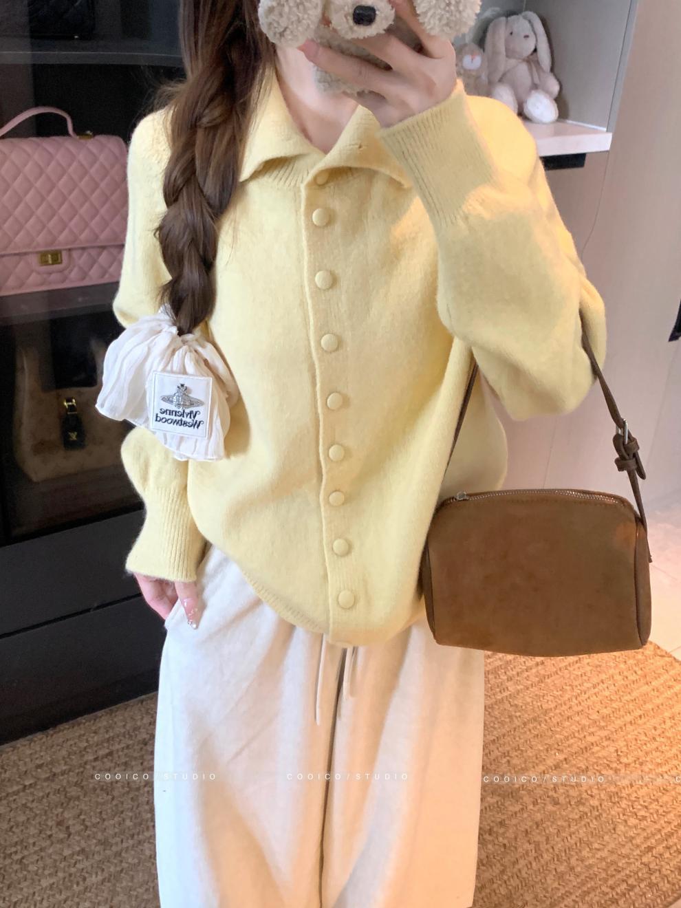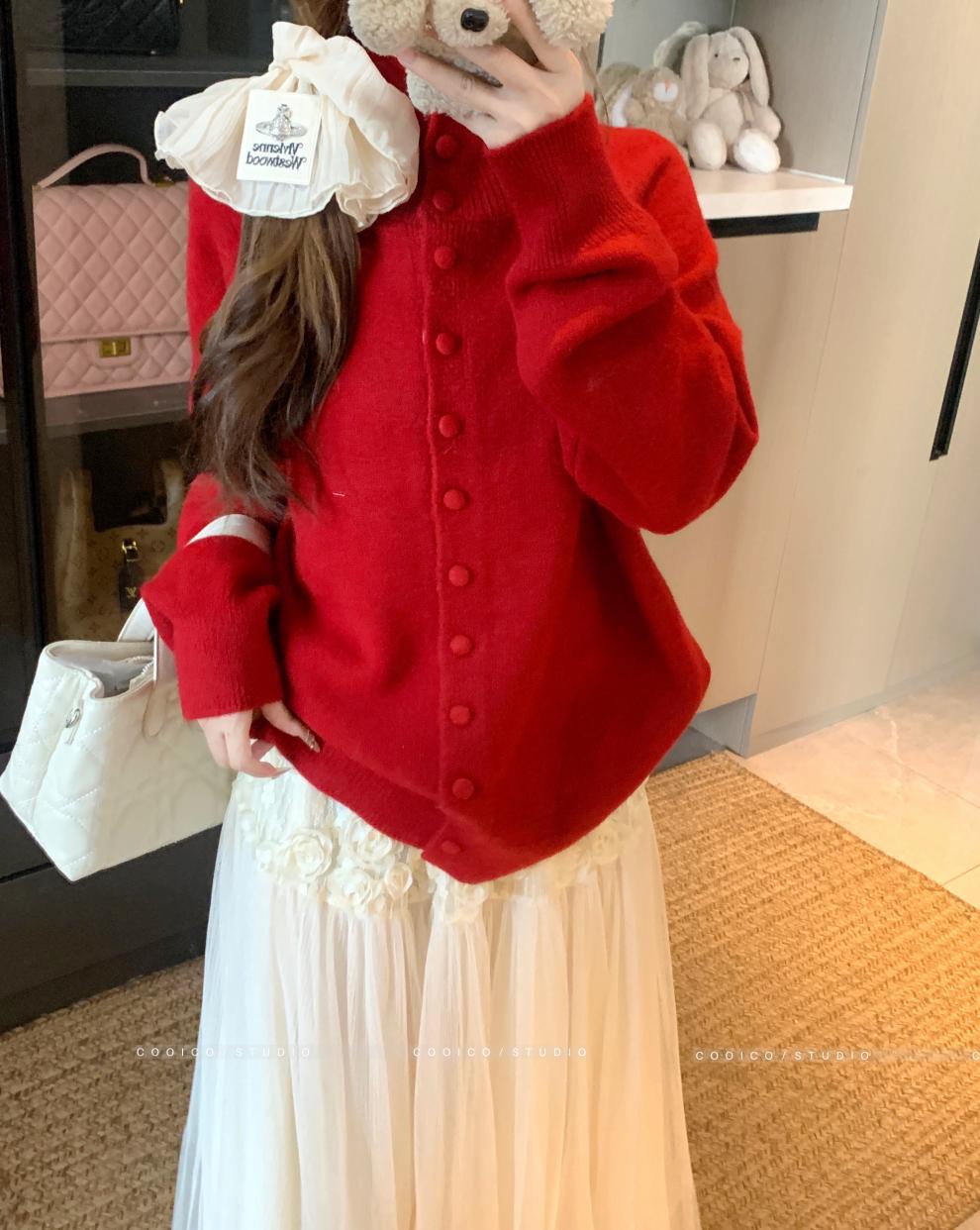 2025秋冬新款胖mm大码女甜美多巴胺彩色纽扣宽松针织毛衣上衣