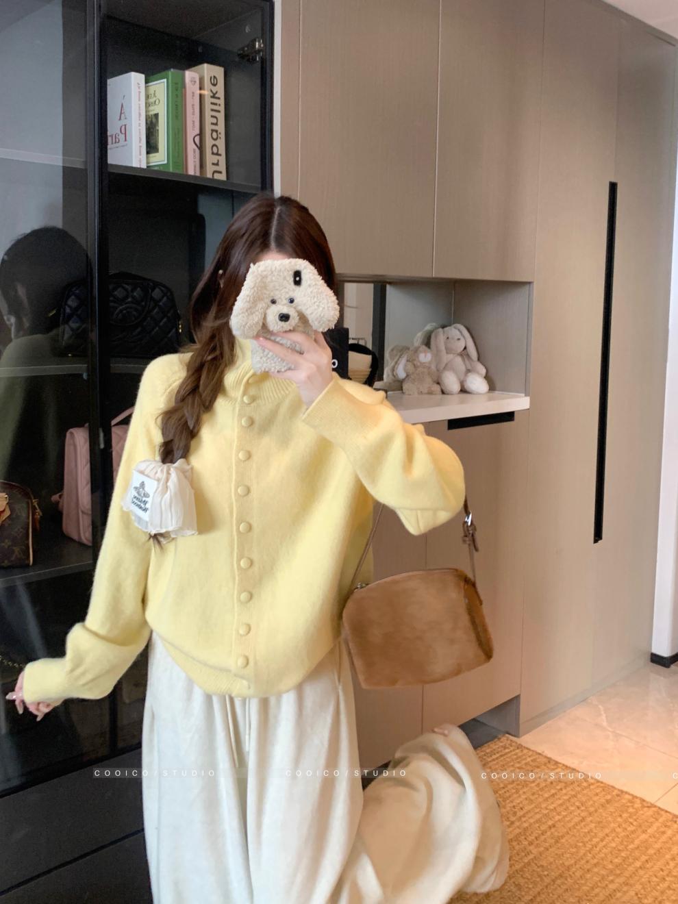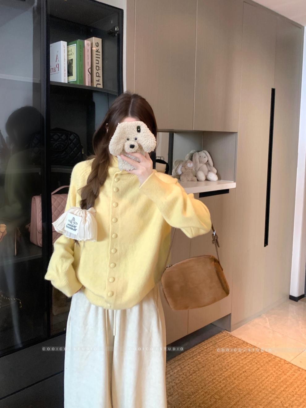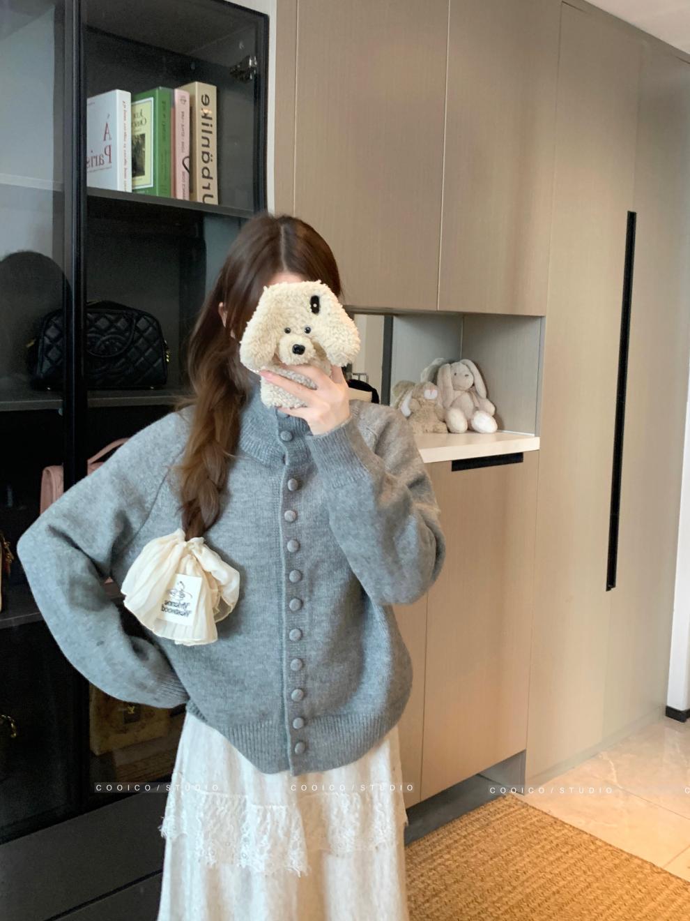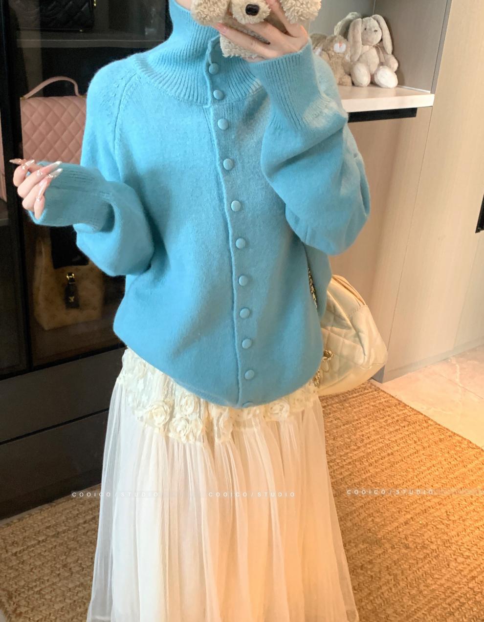 大码高领长袖针织开衫女秋冬新款设计感胖mm宽松显瘦毛衣外套