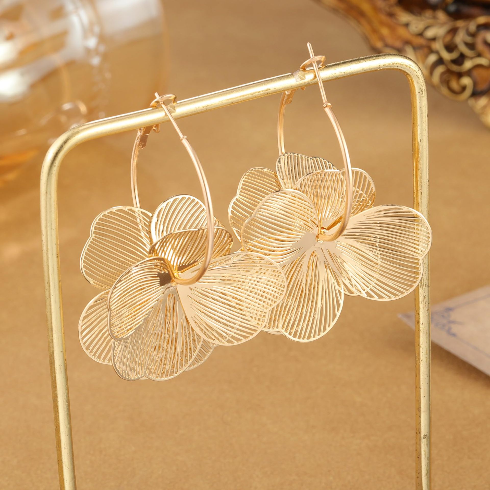 跨境新款轻奢高级感金色花朵耳环时尚小众夸张耳圈甜美气质耳饰品