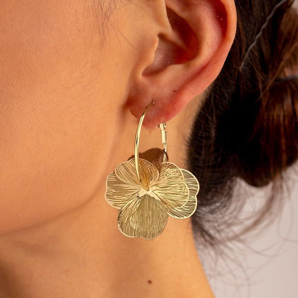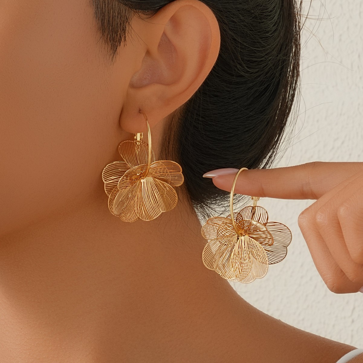 欧美时尚金色花朵耳圈女高级感外贸气质金属耳环跨境热销镂空耳饰