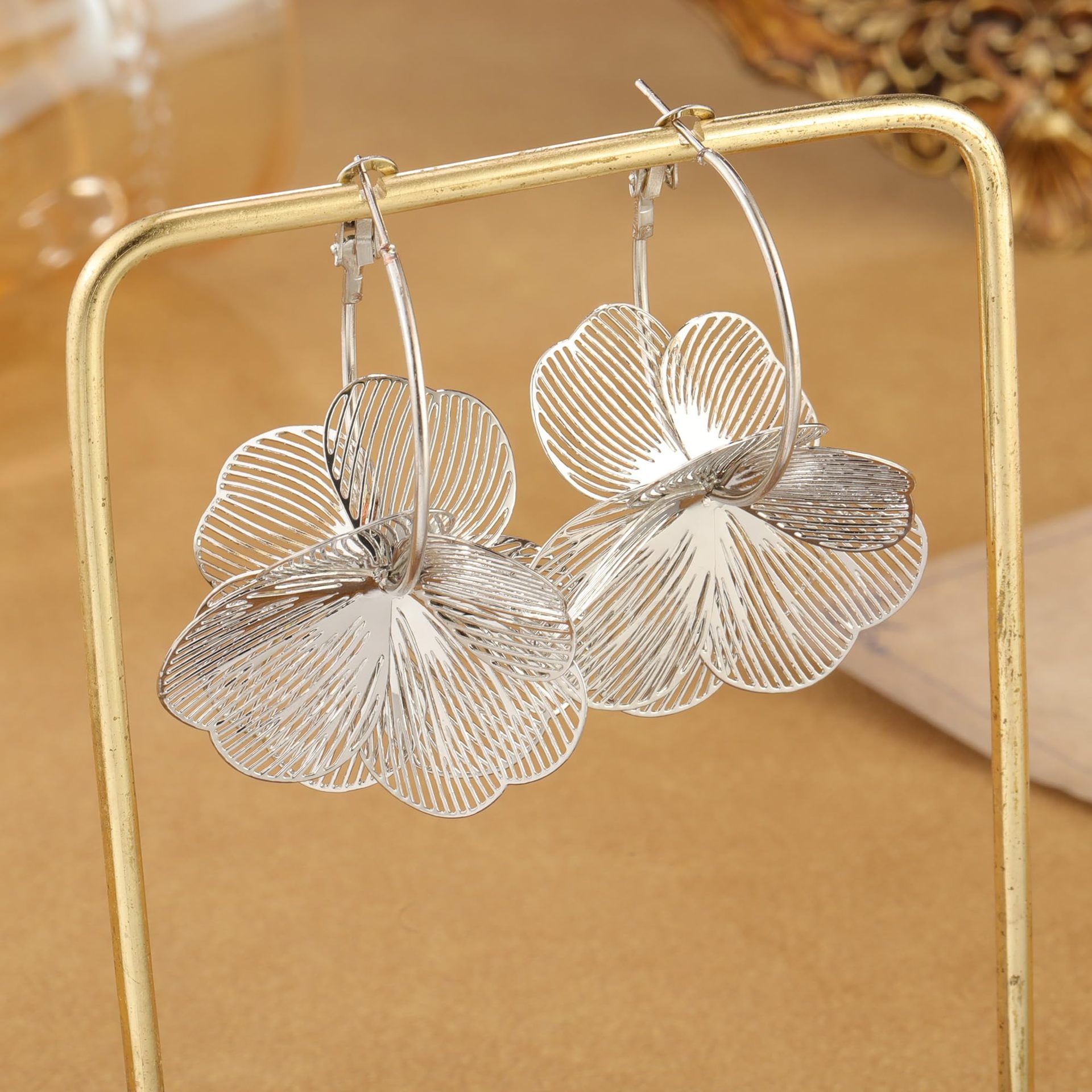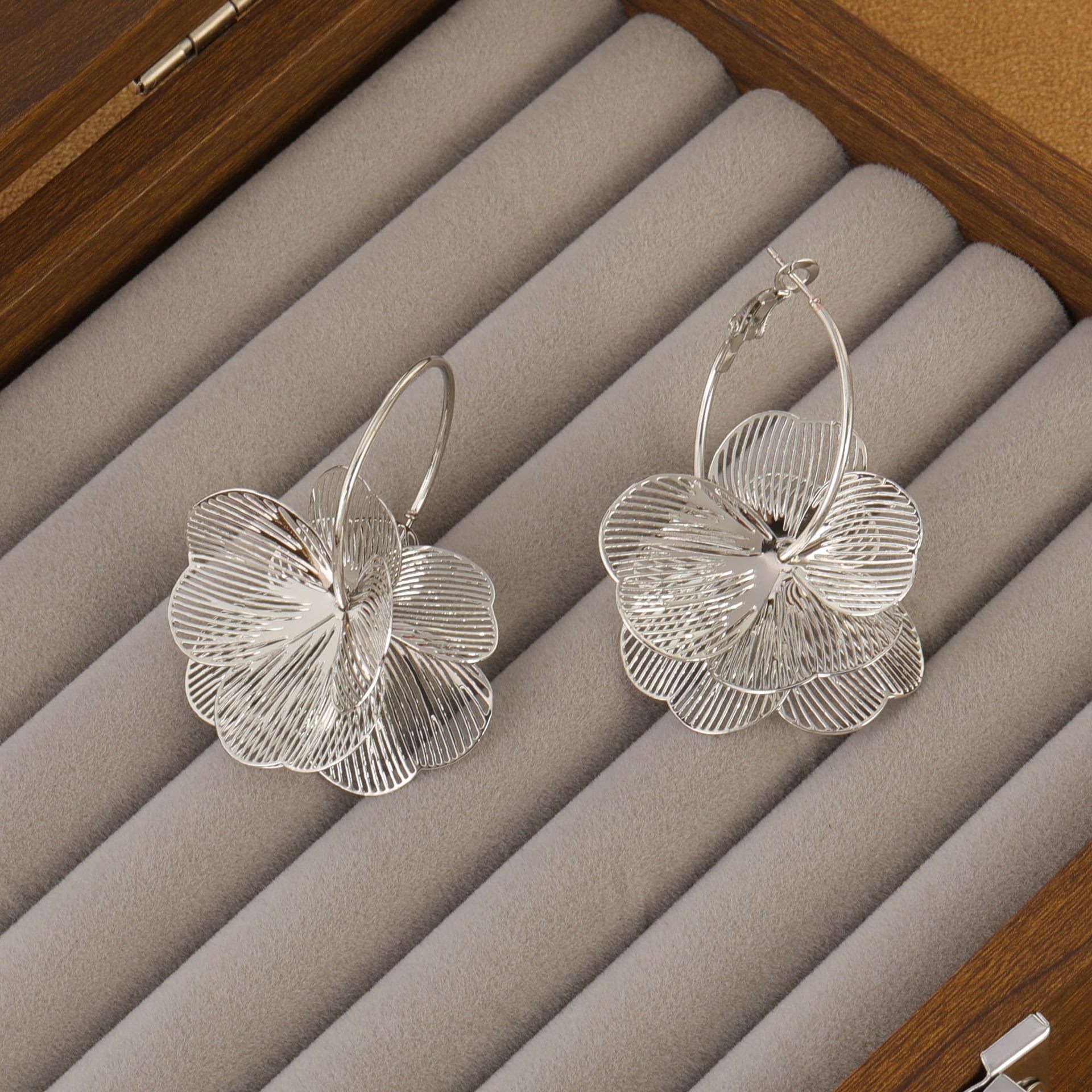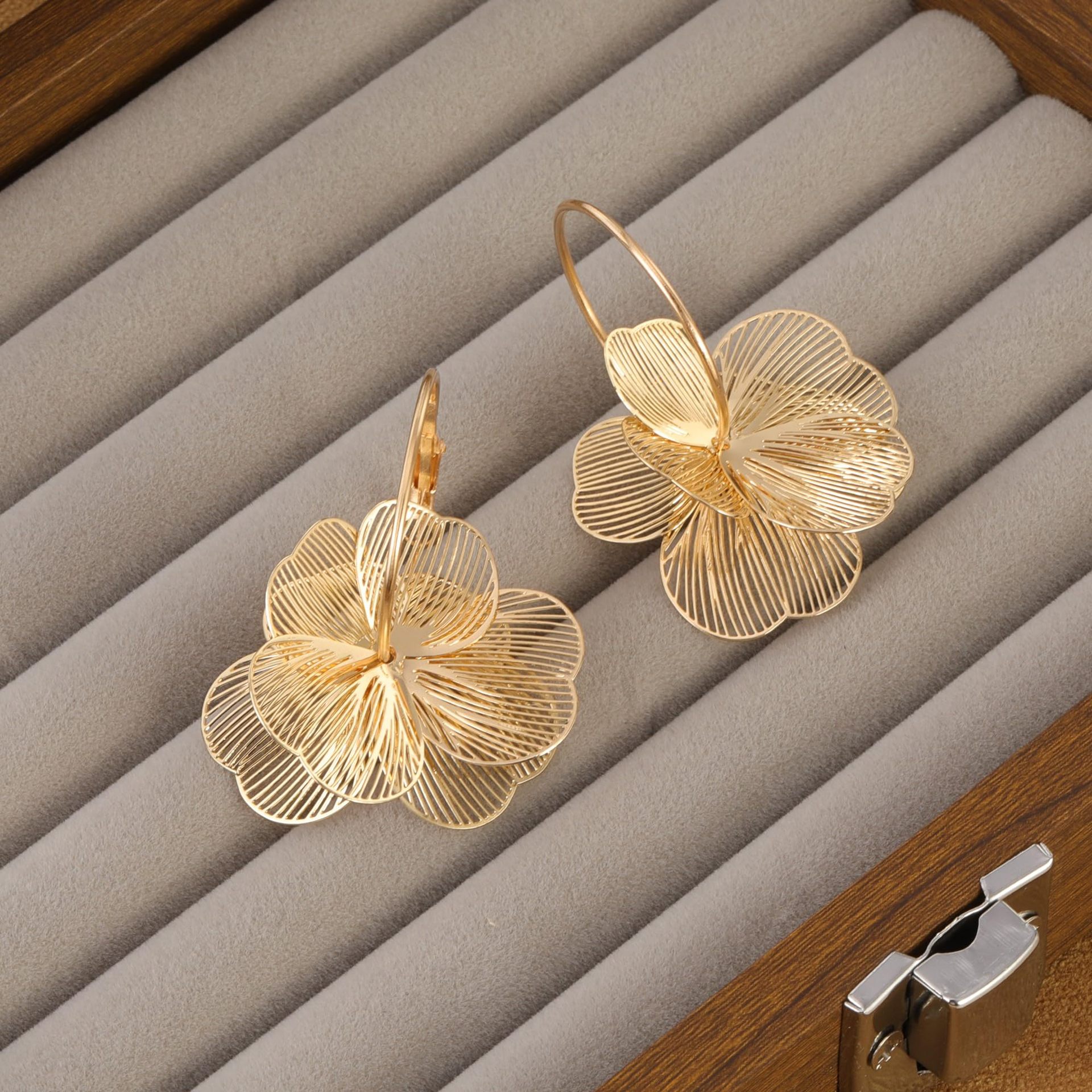 大きなフランスのレトロなハイエンドの中空蝶の花のイヤリング誇張された大きな花びら不規則な軽い高級イヤリング女性用