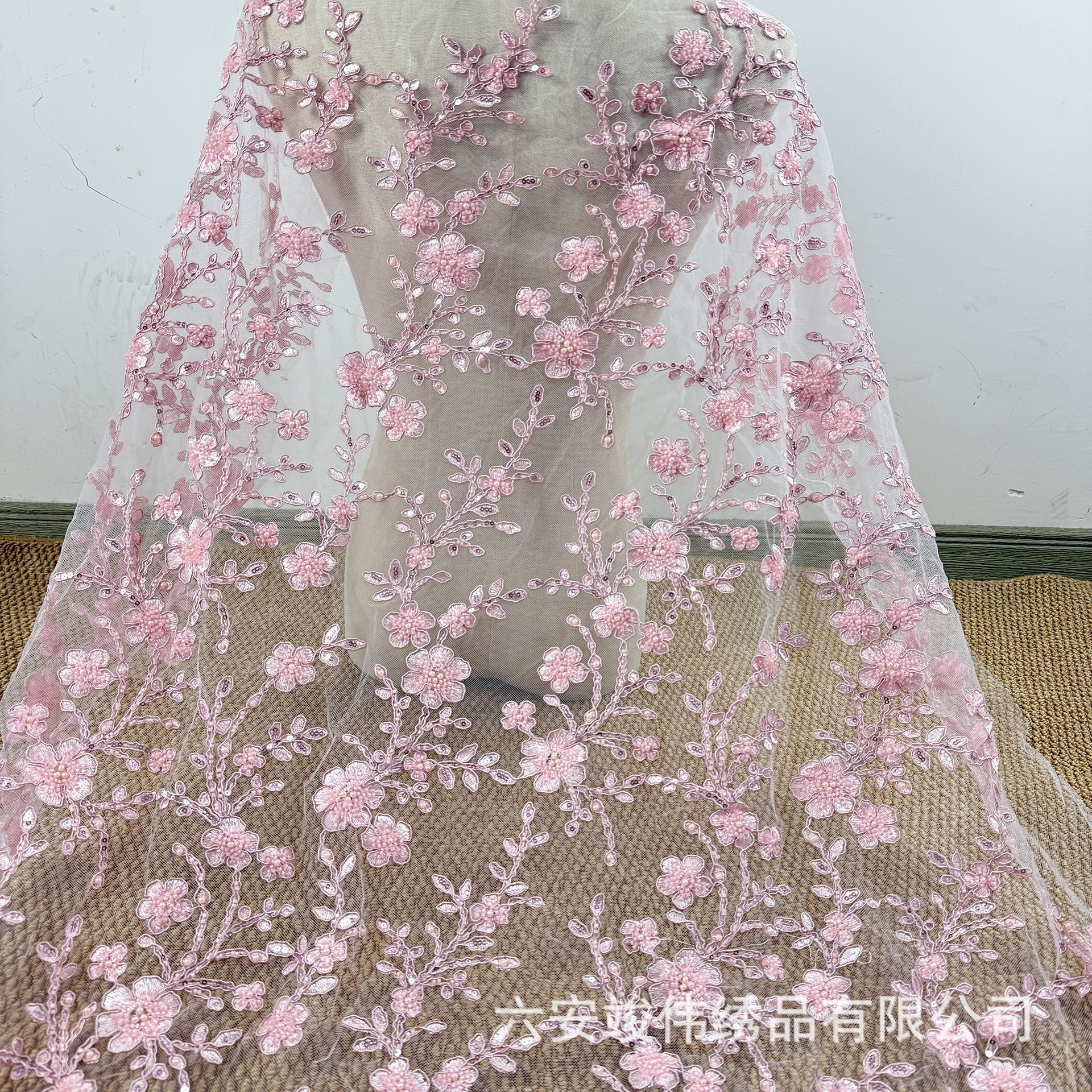 网纱绣花布料 定位花刺绣珠管连衣裙礼服蕾丝面料