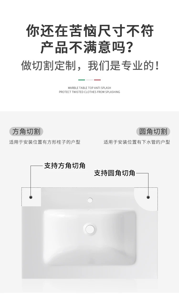 セラミック洗面台大型バスルームキャビネットセラミック一体型洗面台バスルームカウンタートップ洗面台バスルームカウンター洗面台はエッジをカットできます