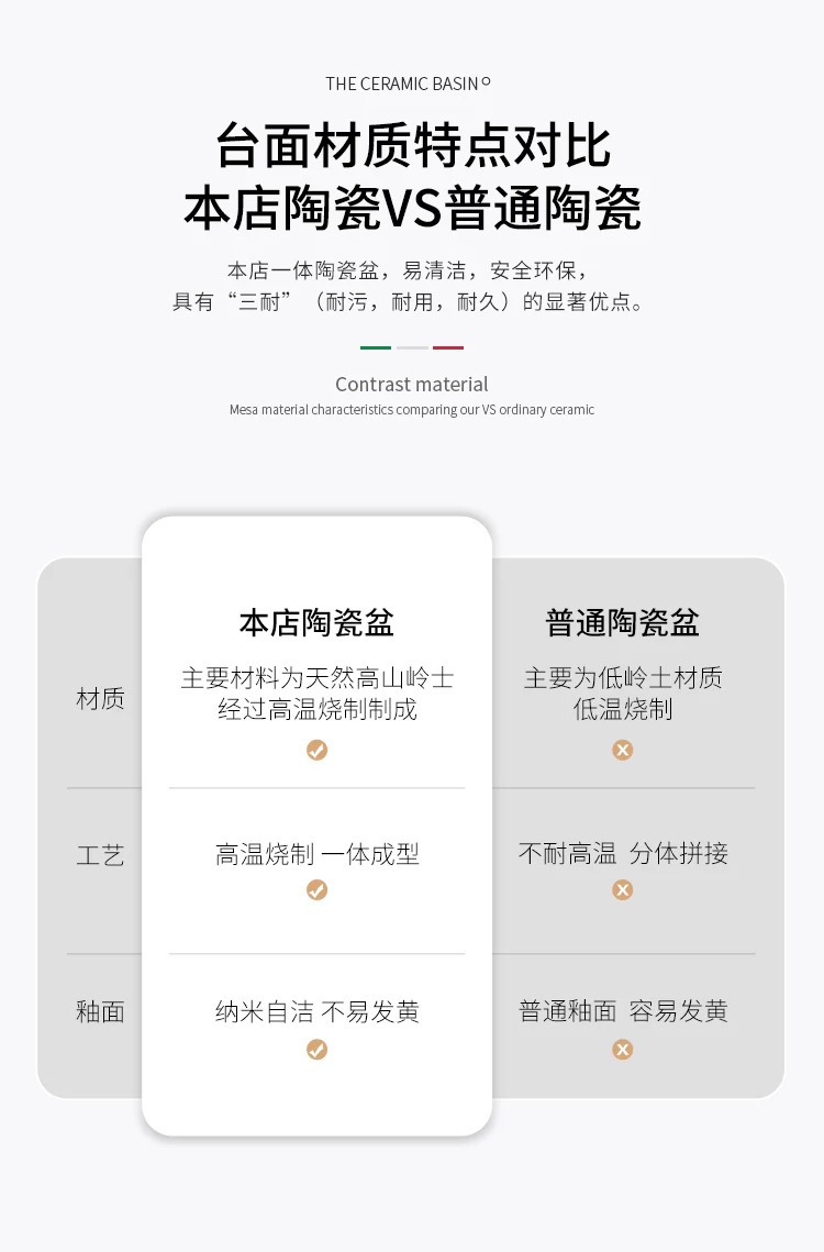 箭᷂牌浴室陶瓷洗面池盆一体盆卫生间半嵌入式台中洗脸盆柜洗漱盆
