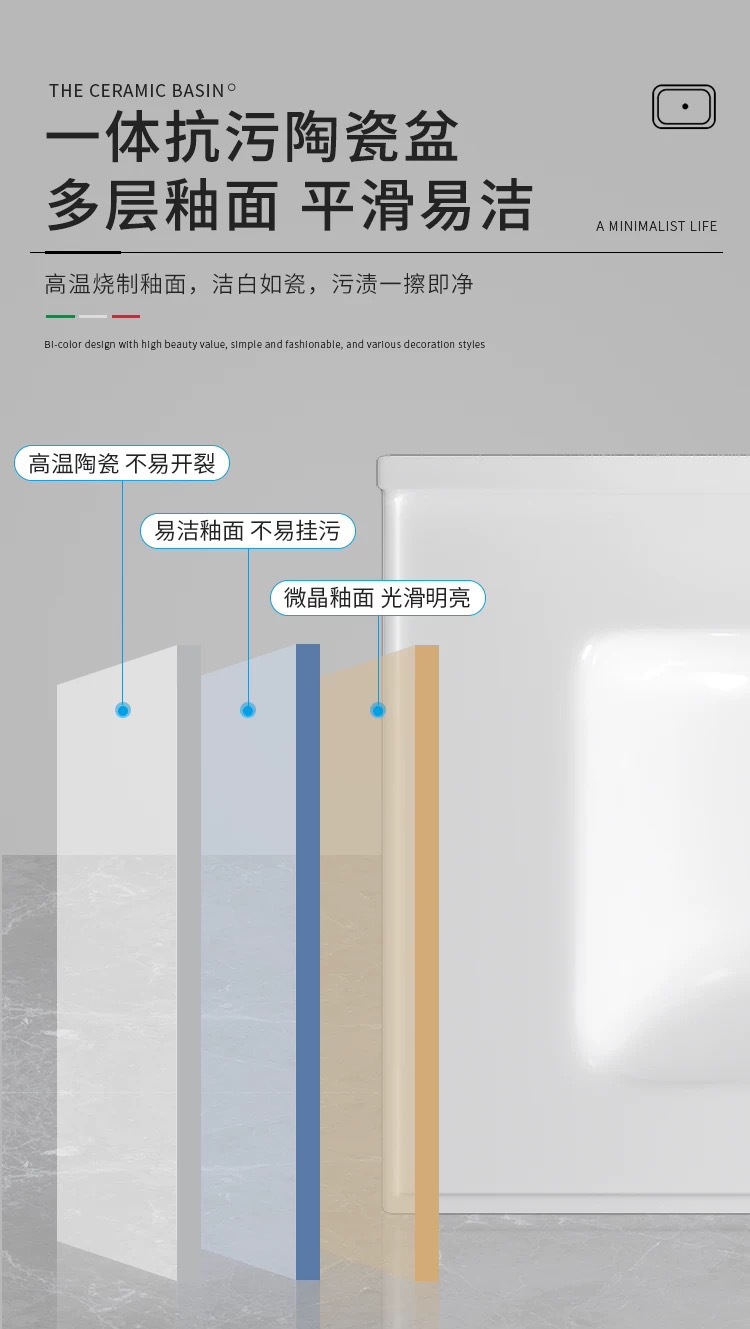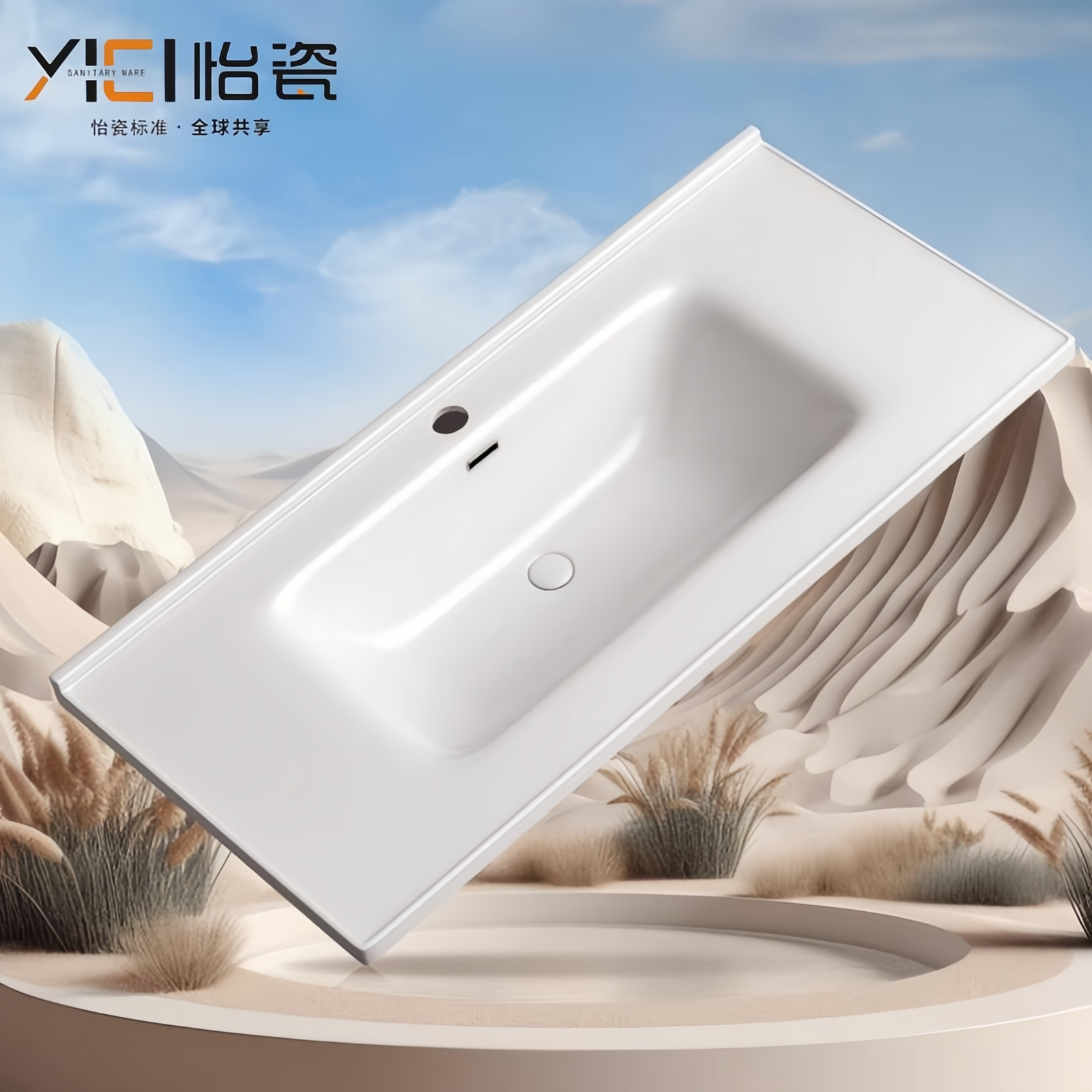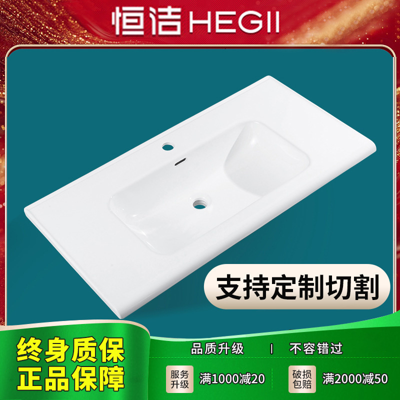 2025恒洁现代简约陶瓷一体盆台盆单孔洗脸盆柜卫生间洗漱台盆批发