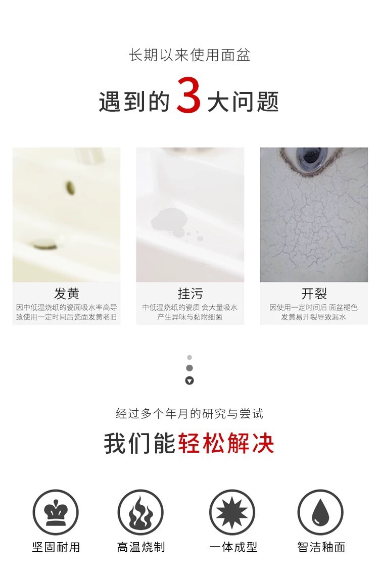 恒洁陶瓷一体盆36|40宽台中盆面洗漱盆浴室洗手盆陶瓷单盆洗手台