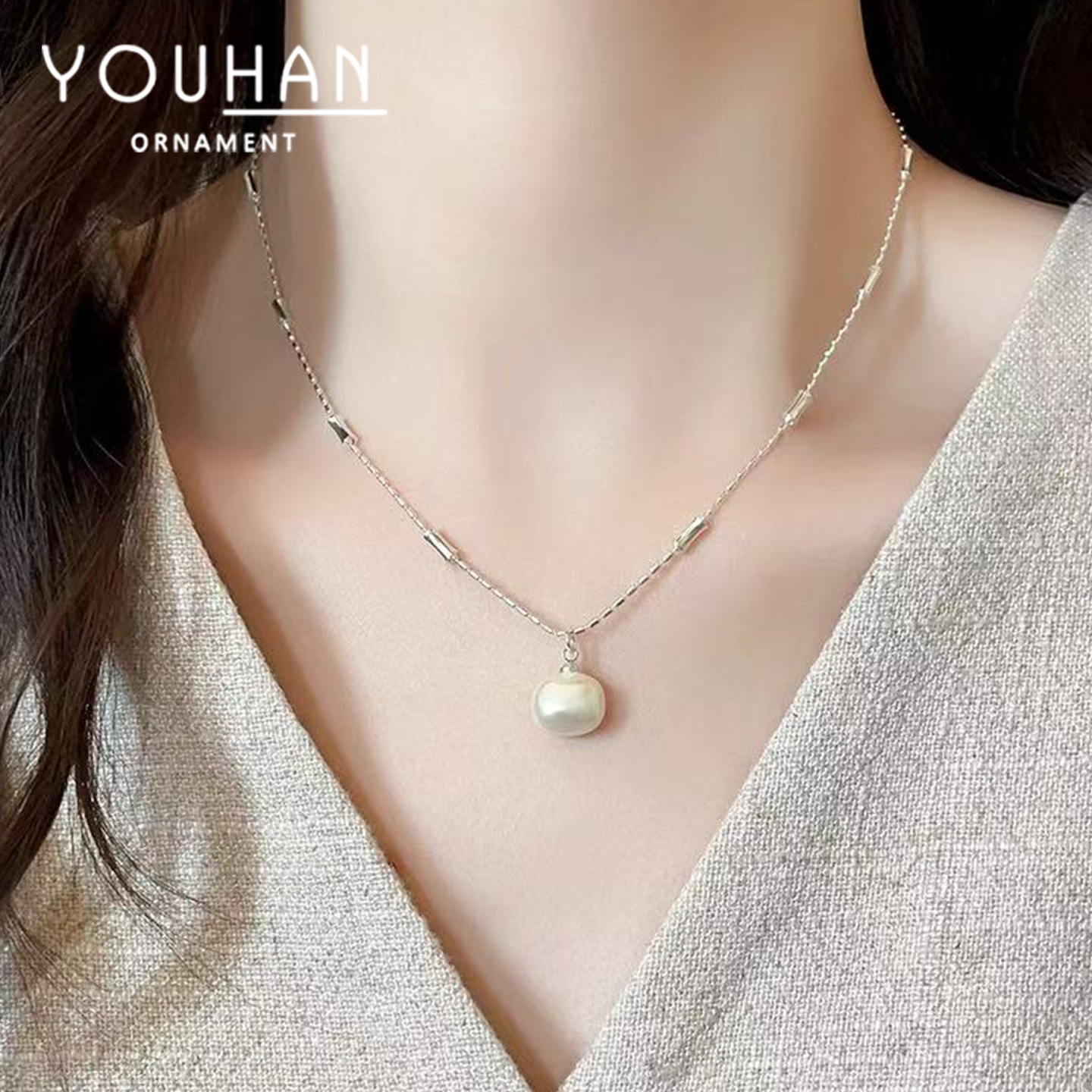 秋冬新款复古法式珍珠项链女小众设计感几何方糖锁骨链百搭毛衣链