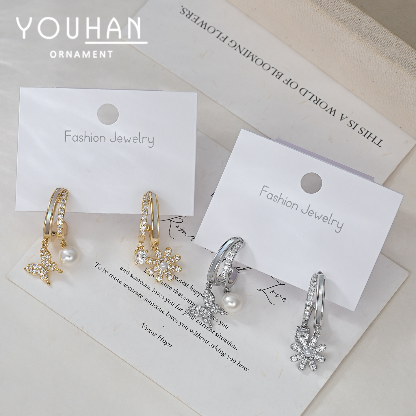揚げ毛鴨s925銀針ピアス森系女子白鳥ジルコンイヤリング小物メーカー卸売り