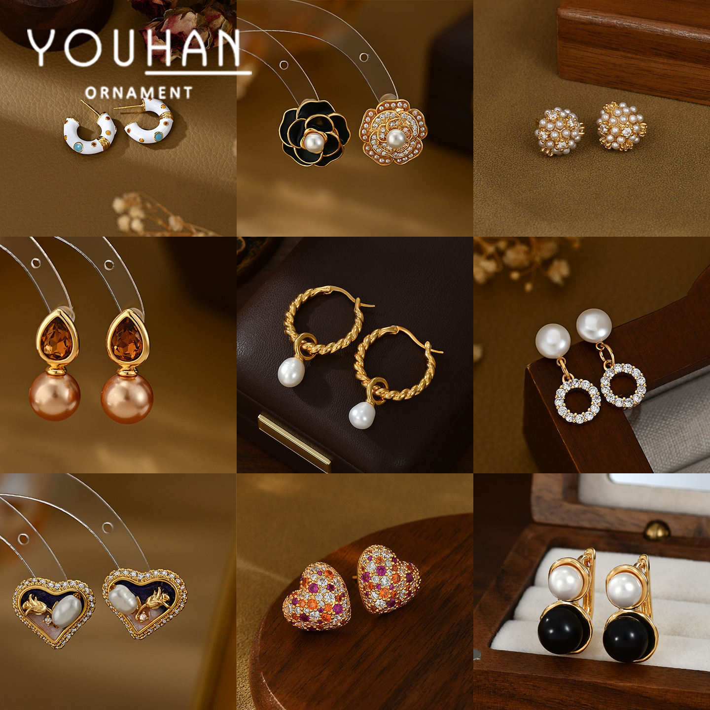 S925银针复古法式珍珠耳钉女高级感蝴蝶结山茶花流苏耳环轻奢耳饰