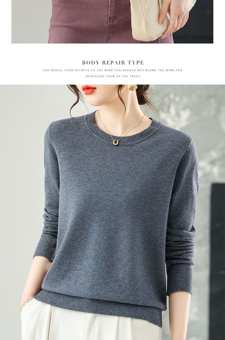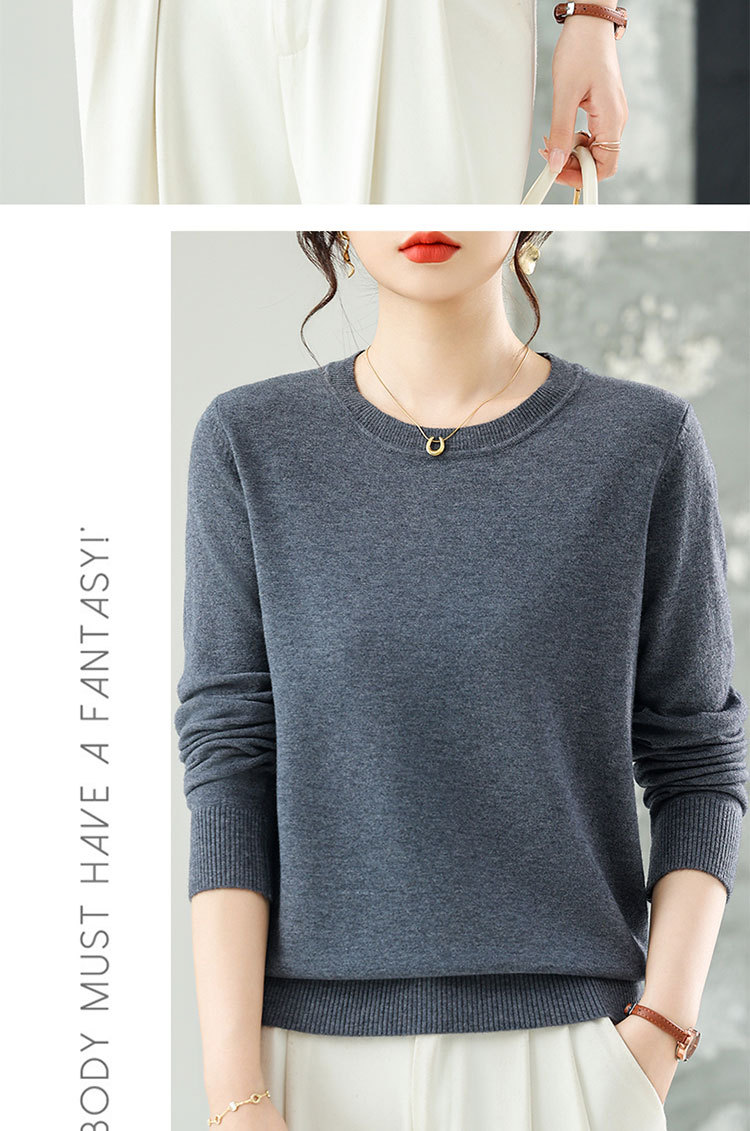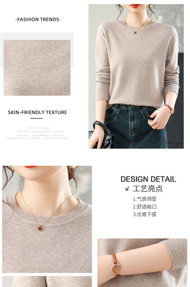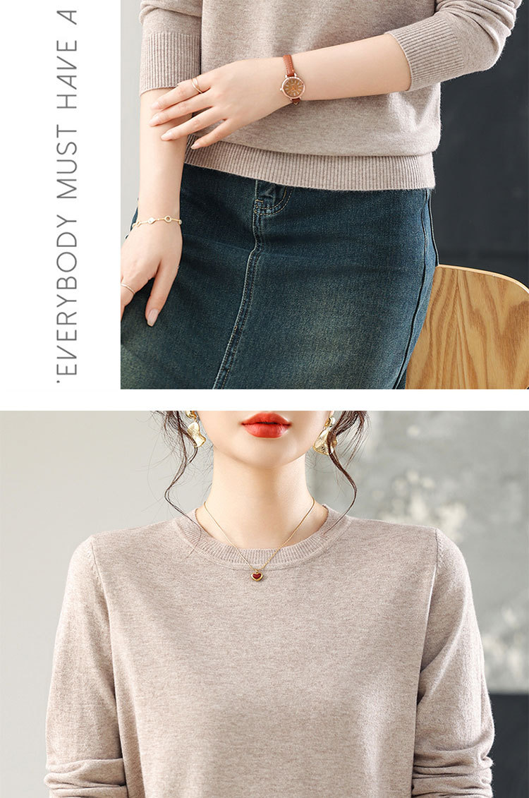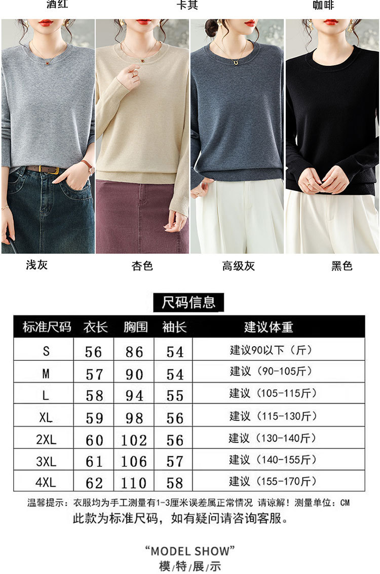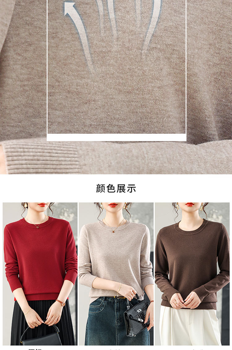 【厂家直供】纯色圆领毛衣女秋季新款宽松百搭显瘦减龄针织打底衫
