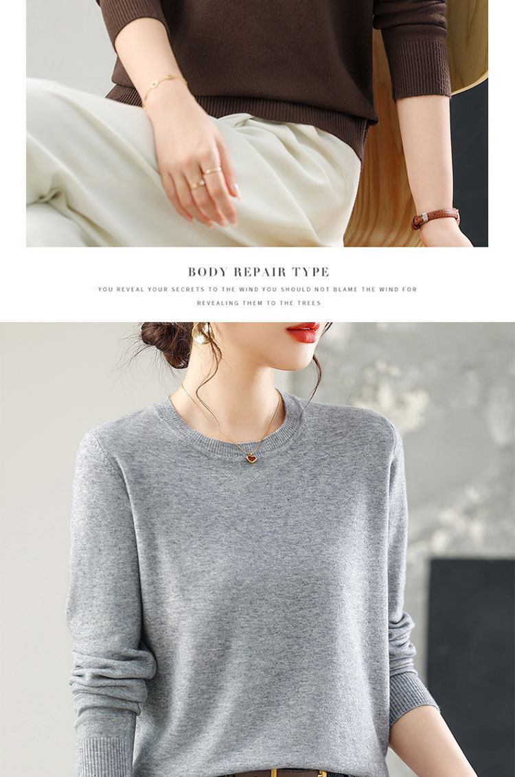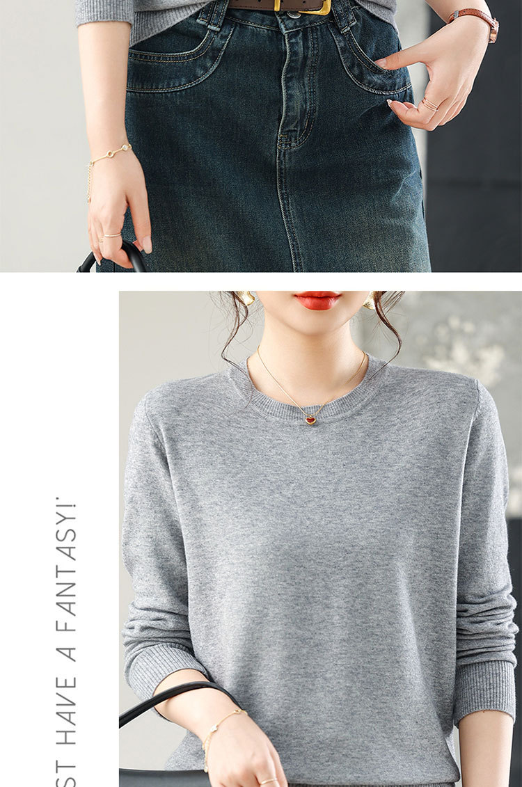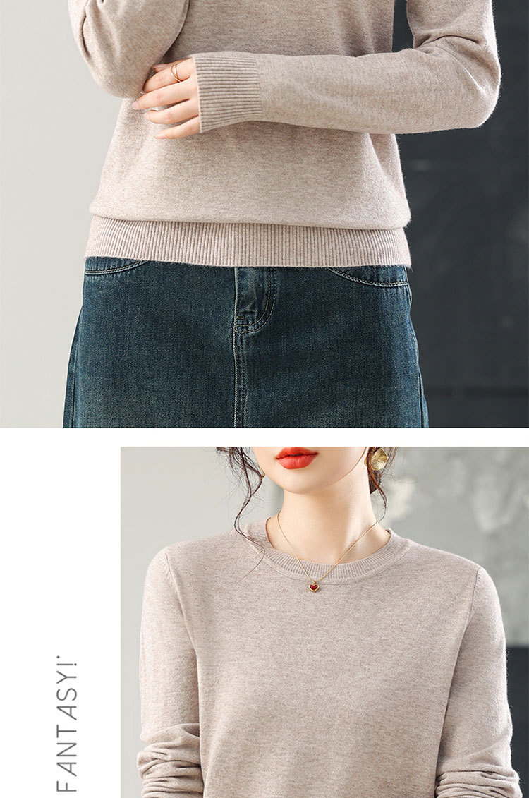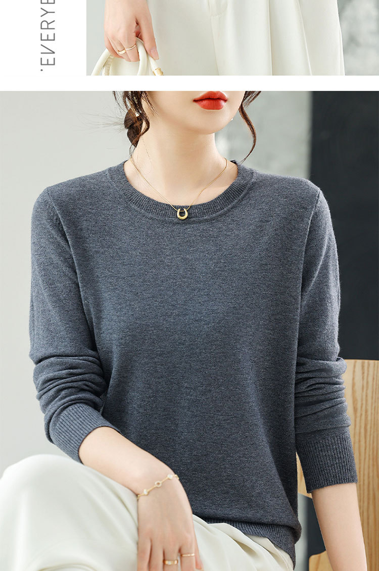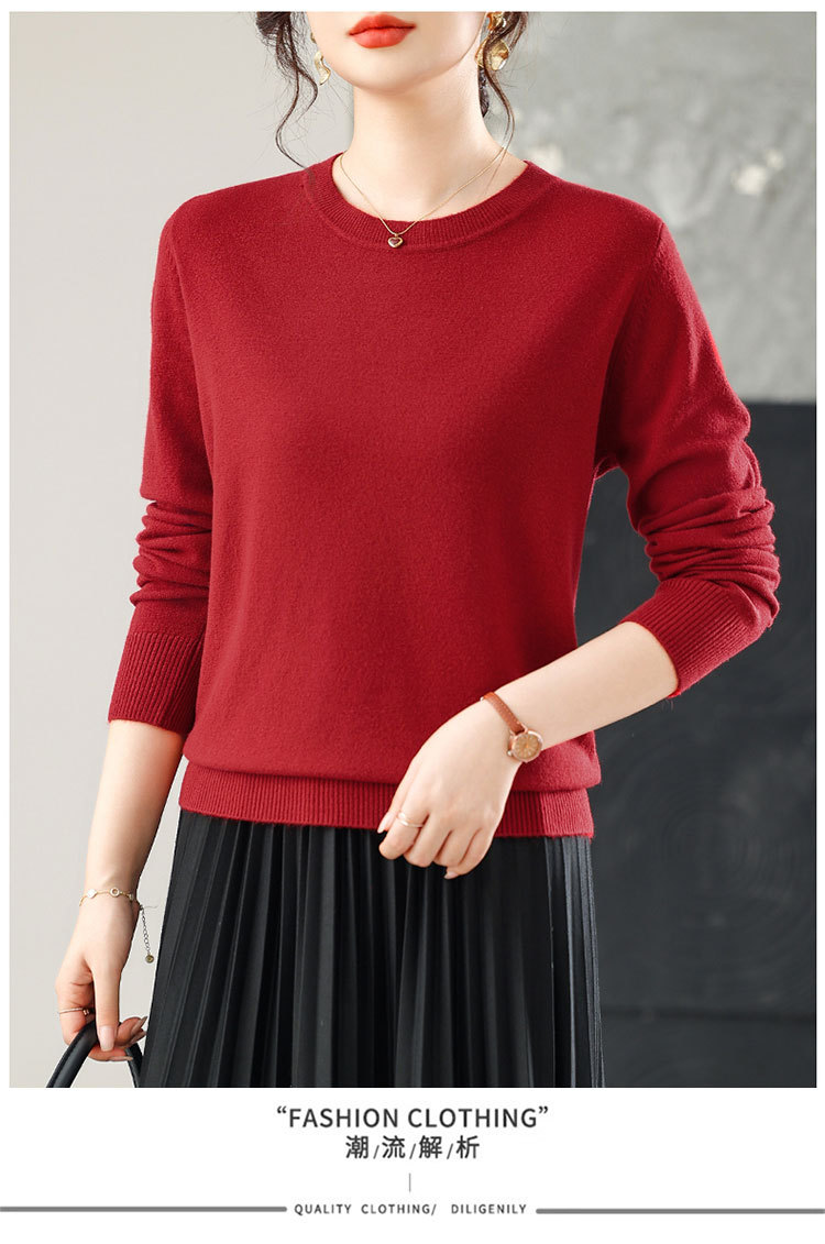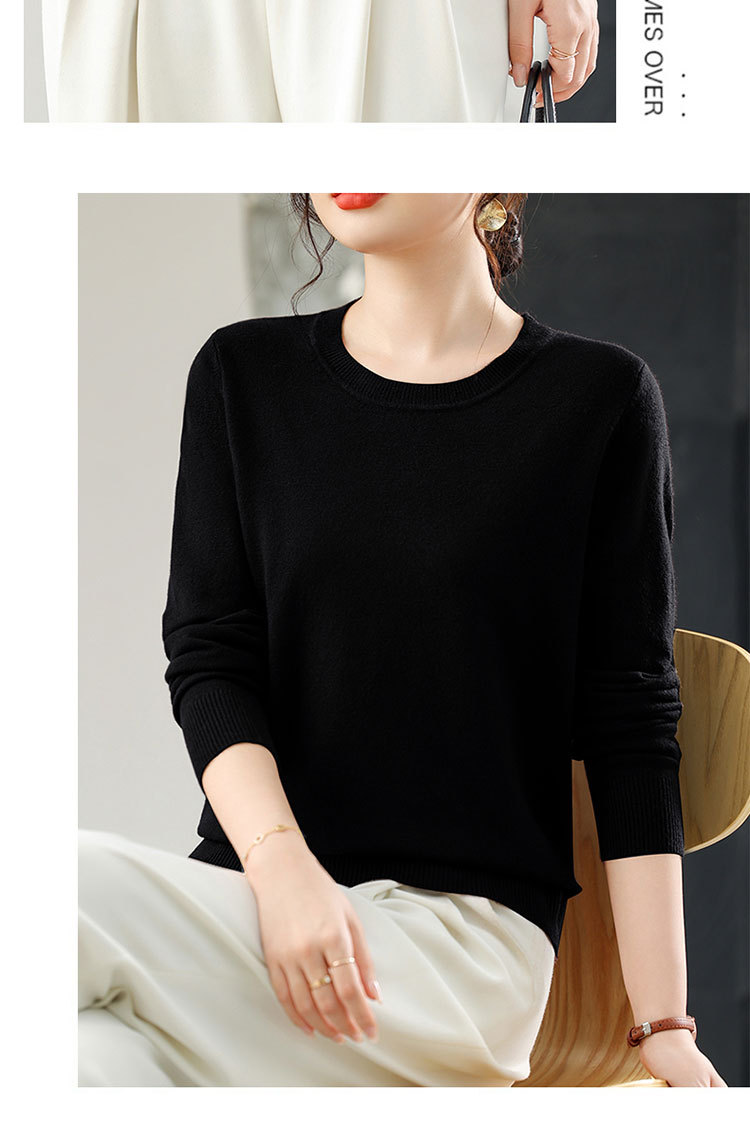 【厂家直供】纯色圆领毛衣女秋季新款宽松百搭显瘦减龄针织打底衫