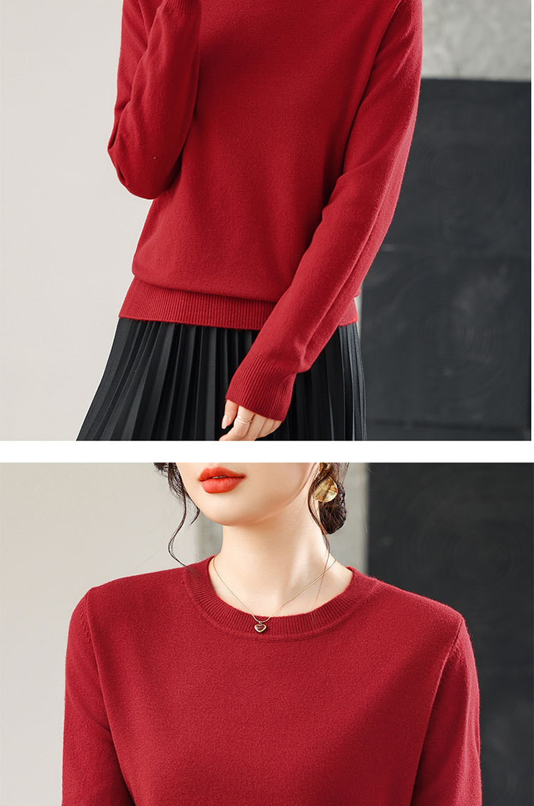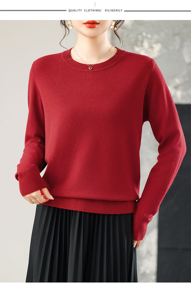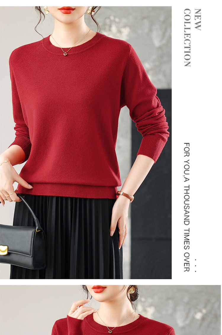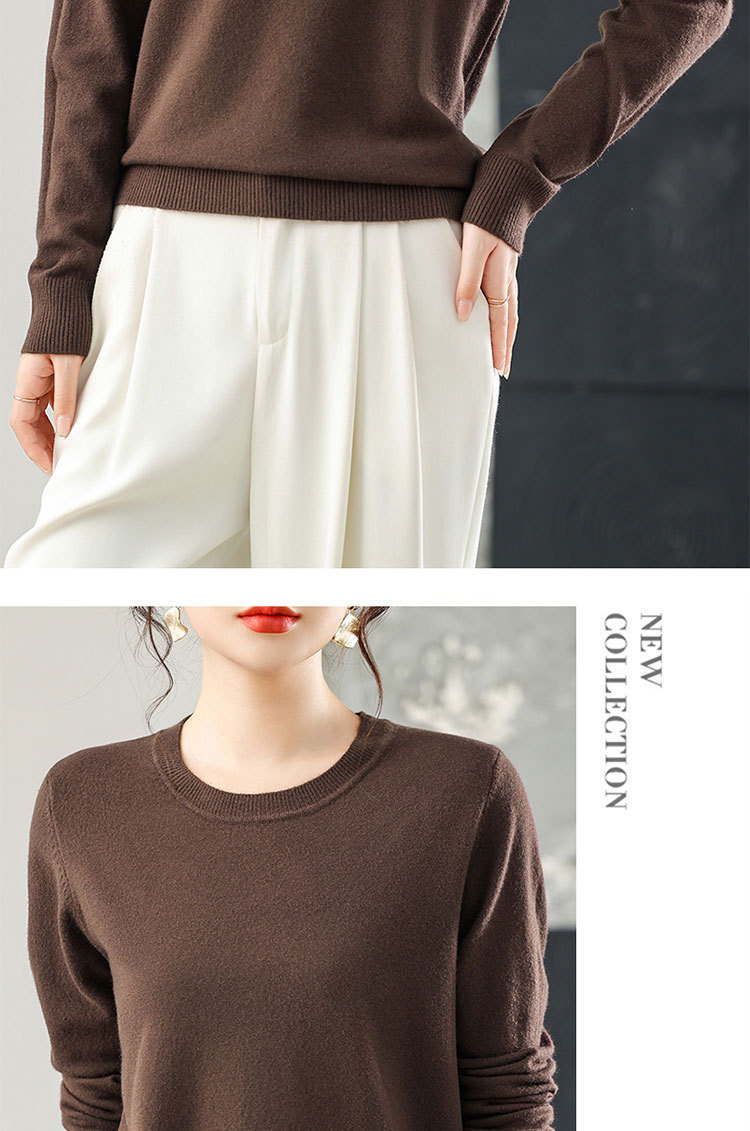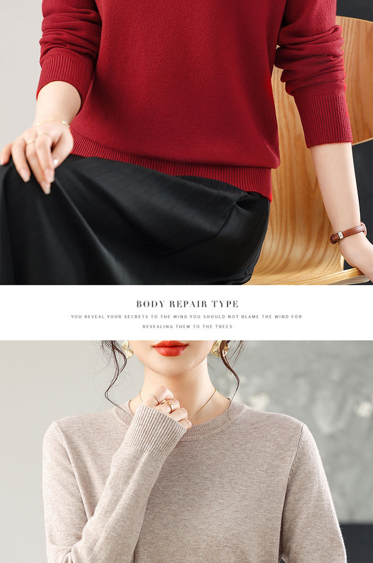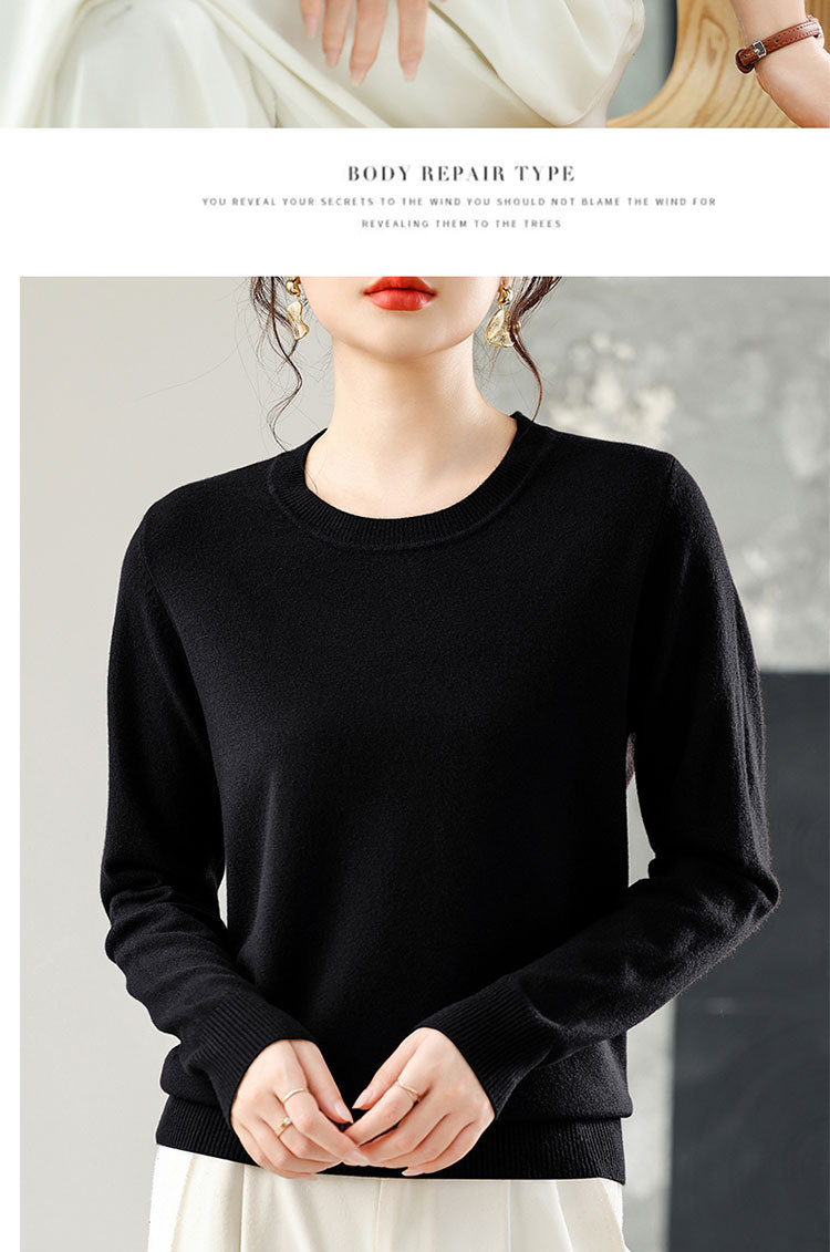 【厂家直供】纯色圆领毛衣女秋季新款宽松百搭显瘦减龄针织打底衫