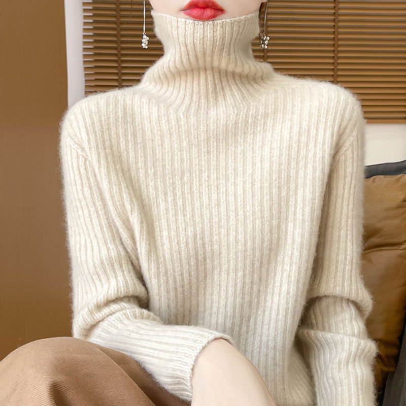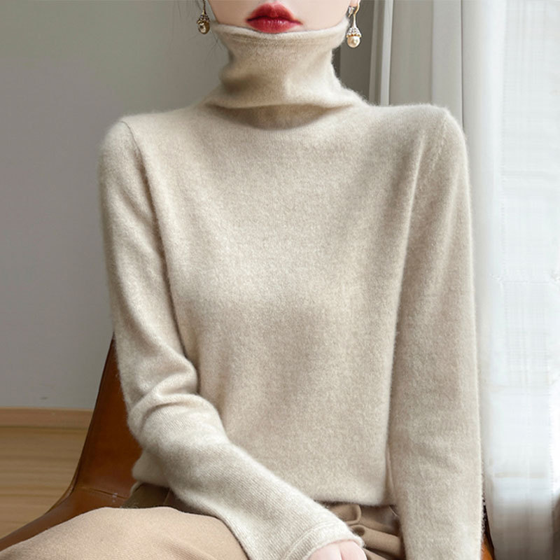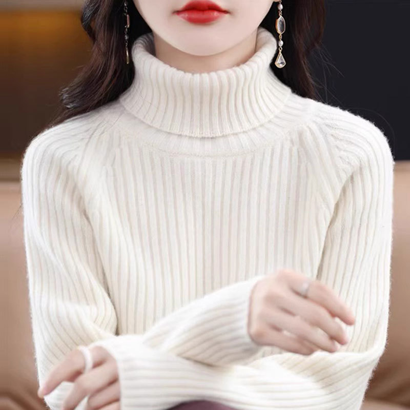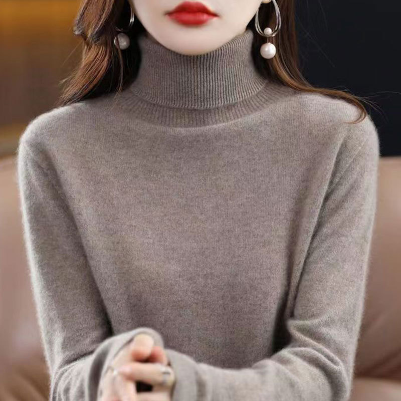 【メーカー直供】高襟のニットの底のシャツを積んで、秋冬の新型の純色の百合のゆったりした洋風のセーターの女性