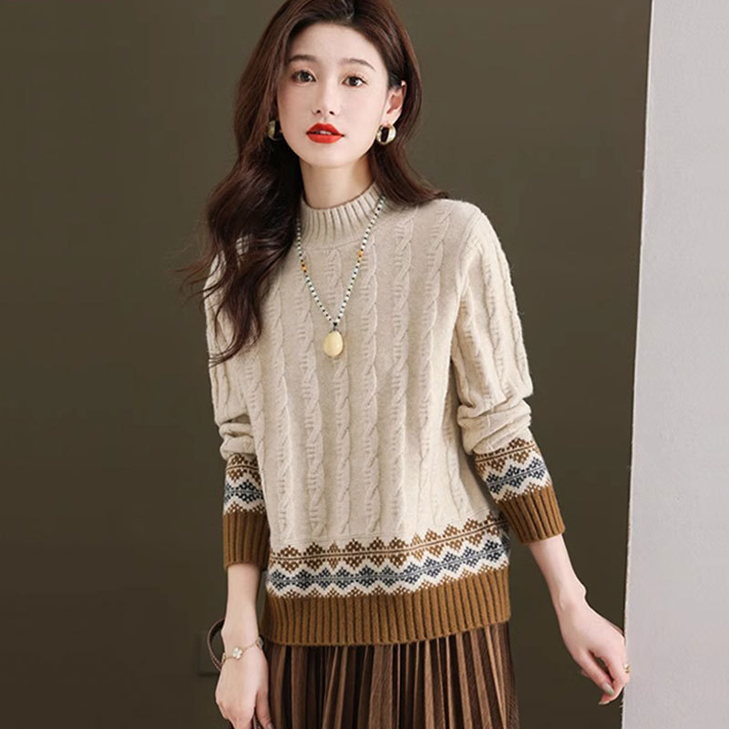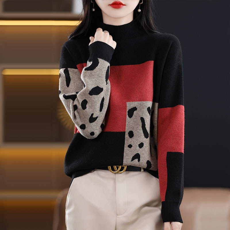 【メーカー直供】秋冬半高襟セーター女性の色合わせがゆるいファッションニット女性のシャツが流行している