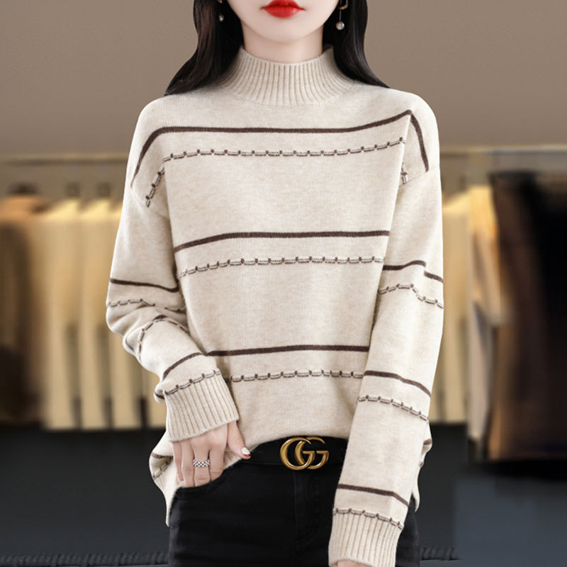【メーカー直供】秋冬の新商品の半高襟セーターの女性ファッションがゆったりしています。