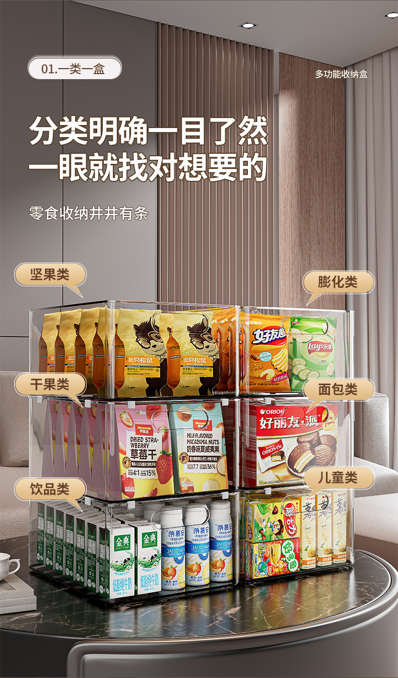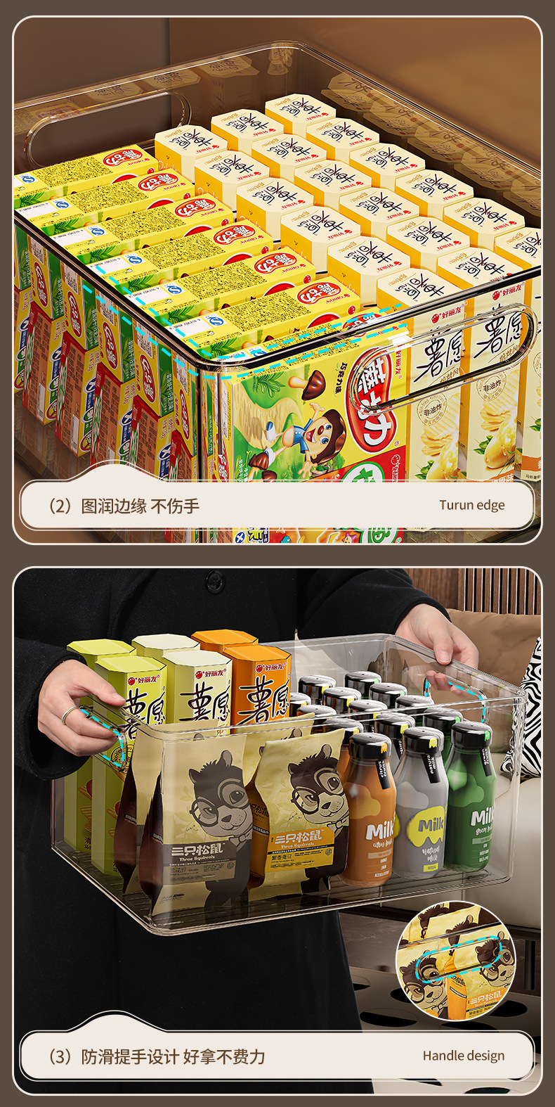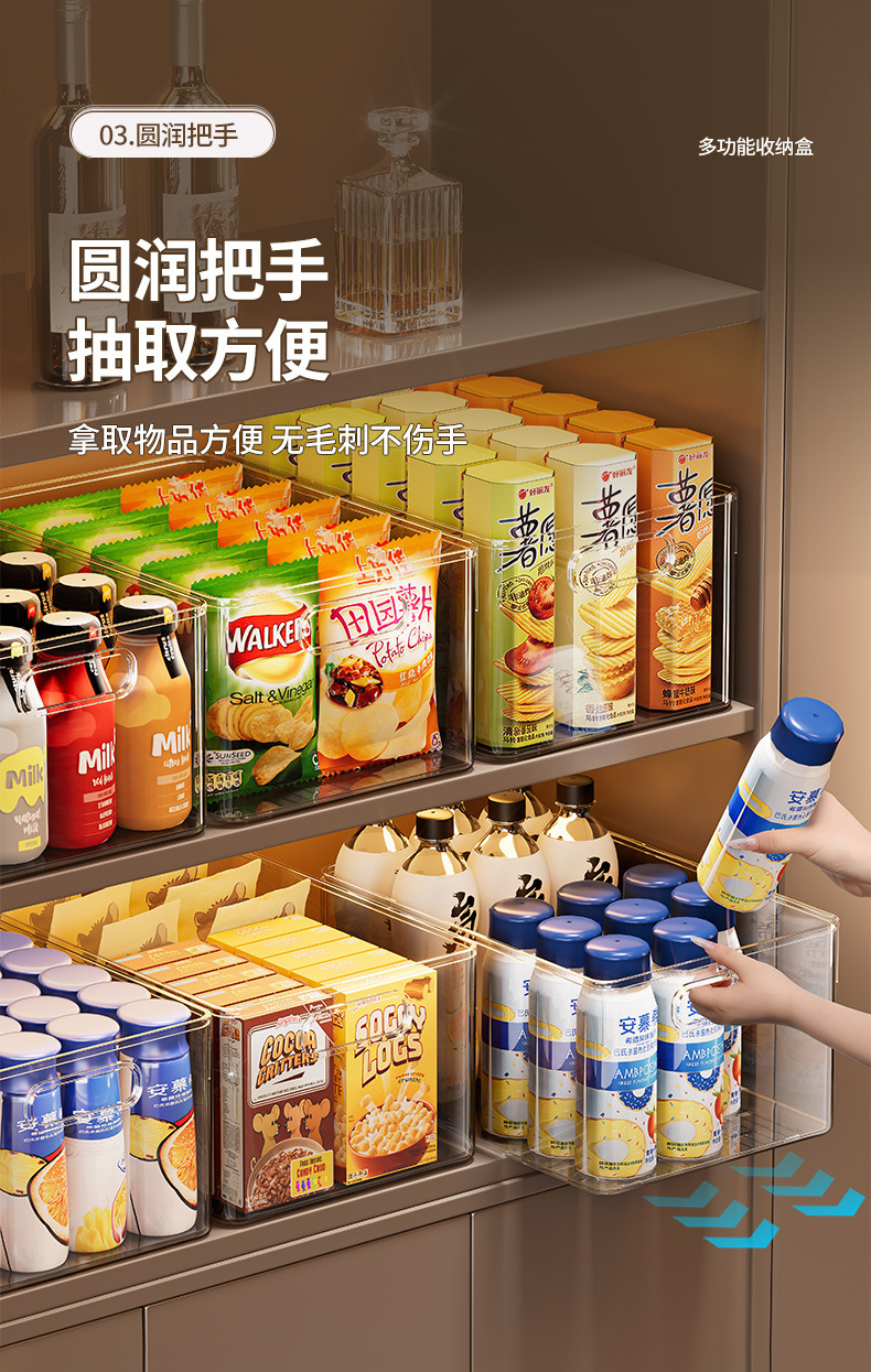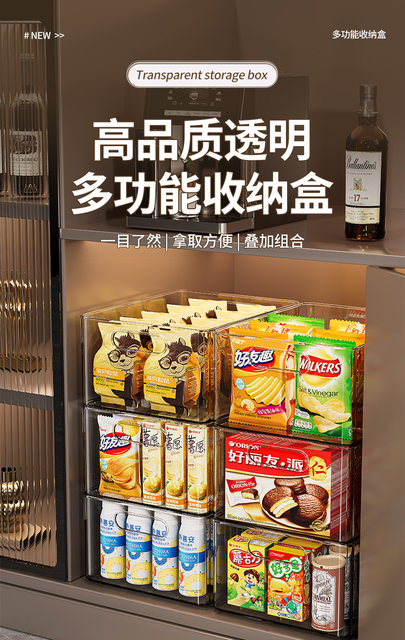 橱柜收纳盒桌面零食杂物整理储物筐长方形塑料盒透明亚克力置物架