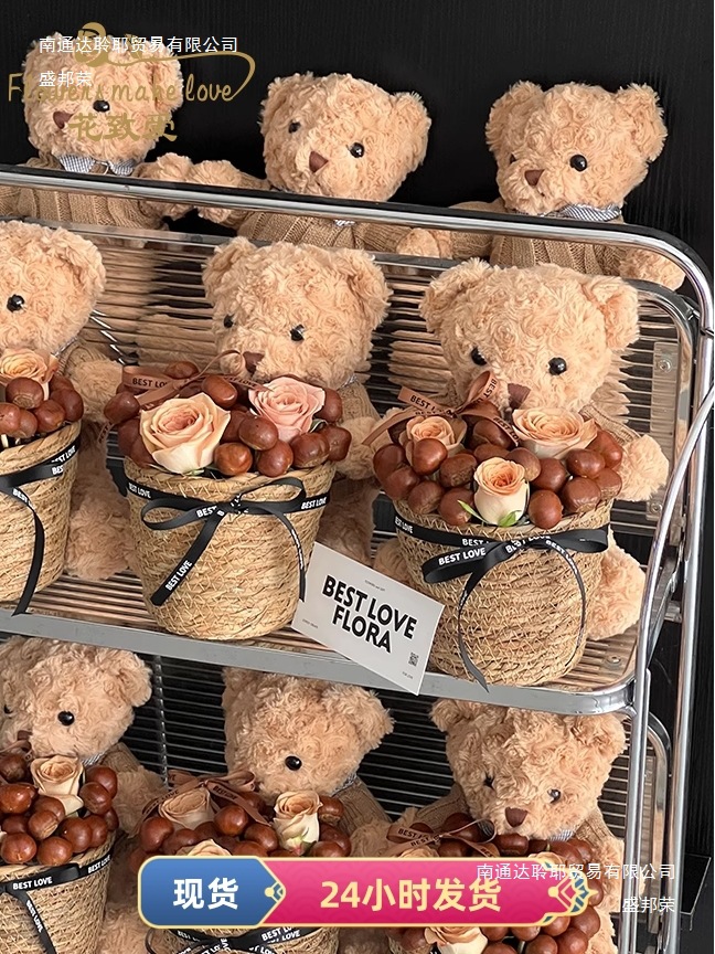 Bx小熊抱抱桶板栗花束花艺diy手工生日节日编插花花篮抱抱