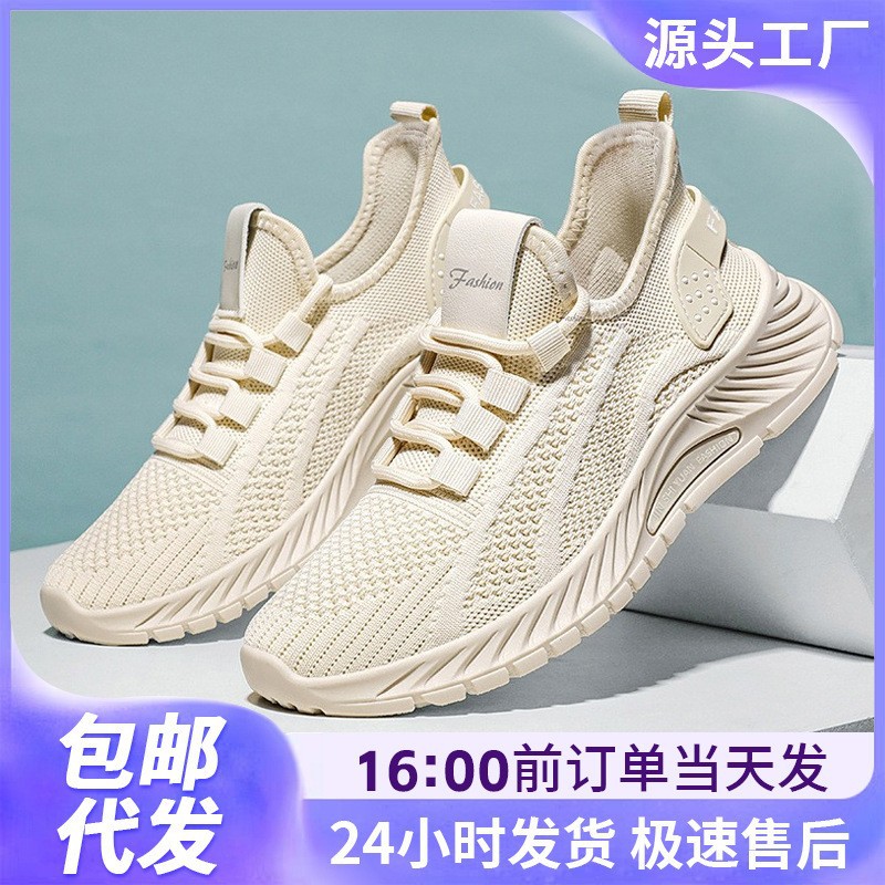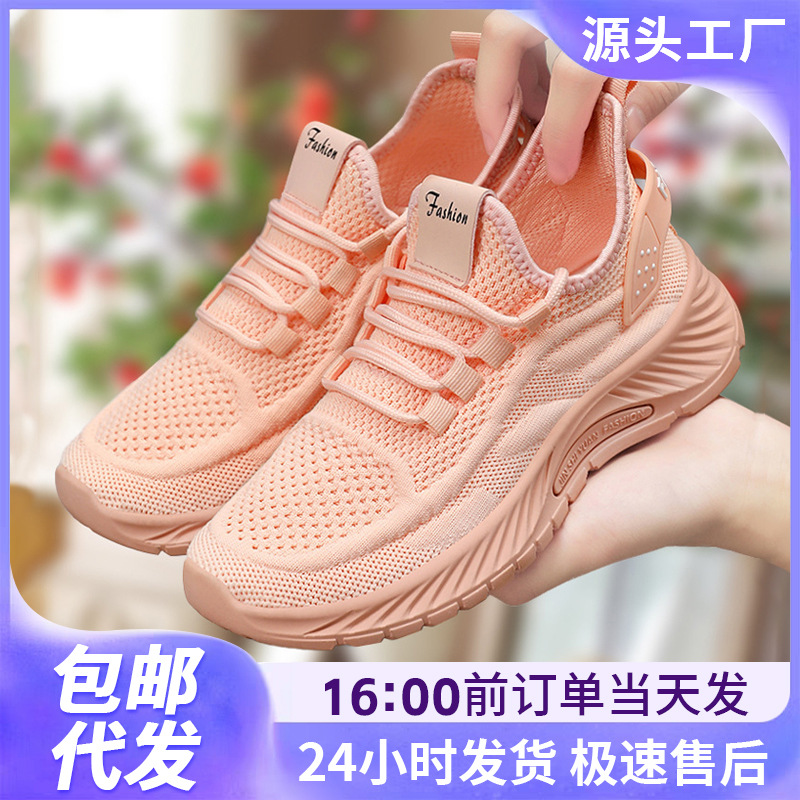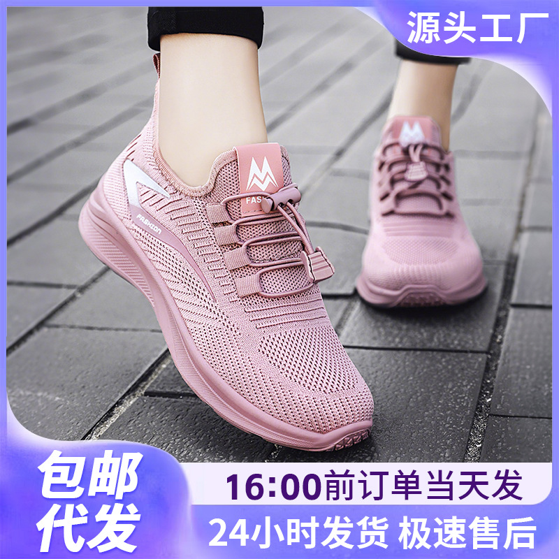 春の女性用スポーツシューズ、通気性のあるフライウーブン素材、柔らかい靴底で足が疲れにくい、大きいサイズ、多用途カジュアルシューズ、卸売販売。