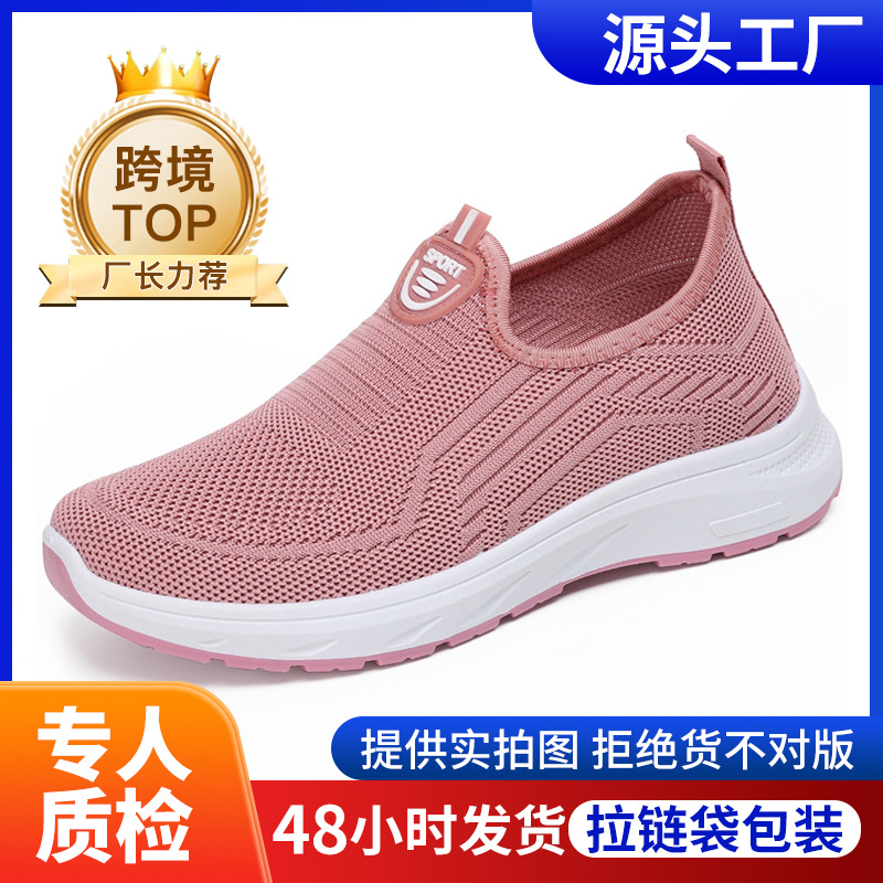 レディースシューズ新作、フライニット素材の大きいサイズカジュアルシューズ、スリッポン、ママシューズ、軽量老北京布靴、フラットシューズ、卸売