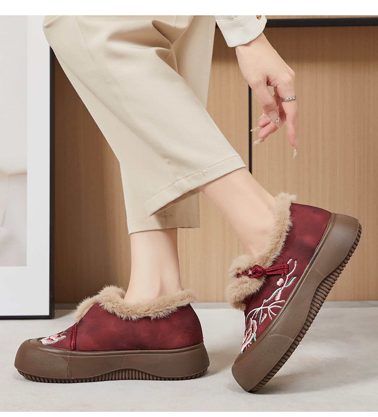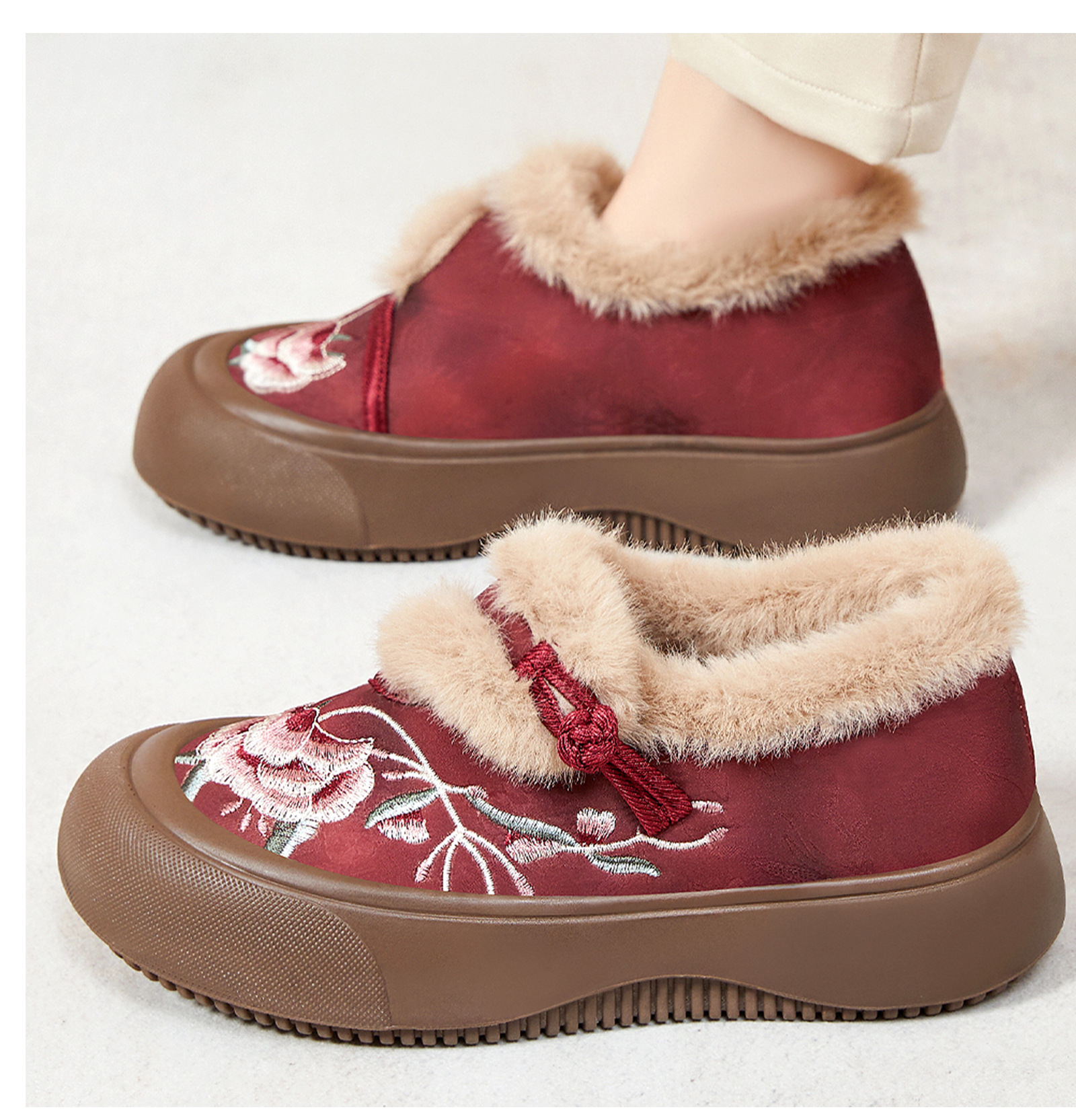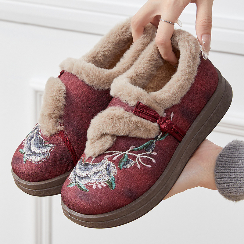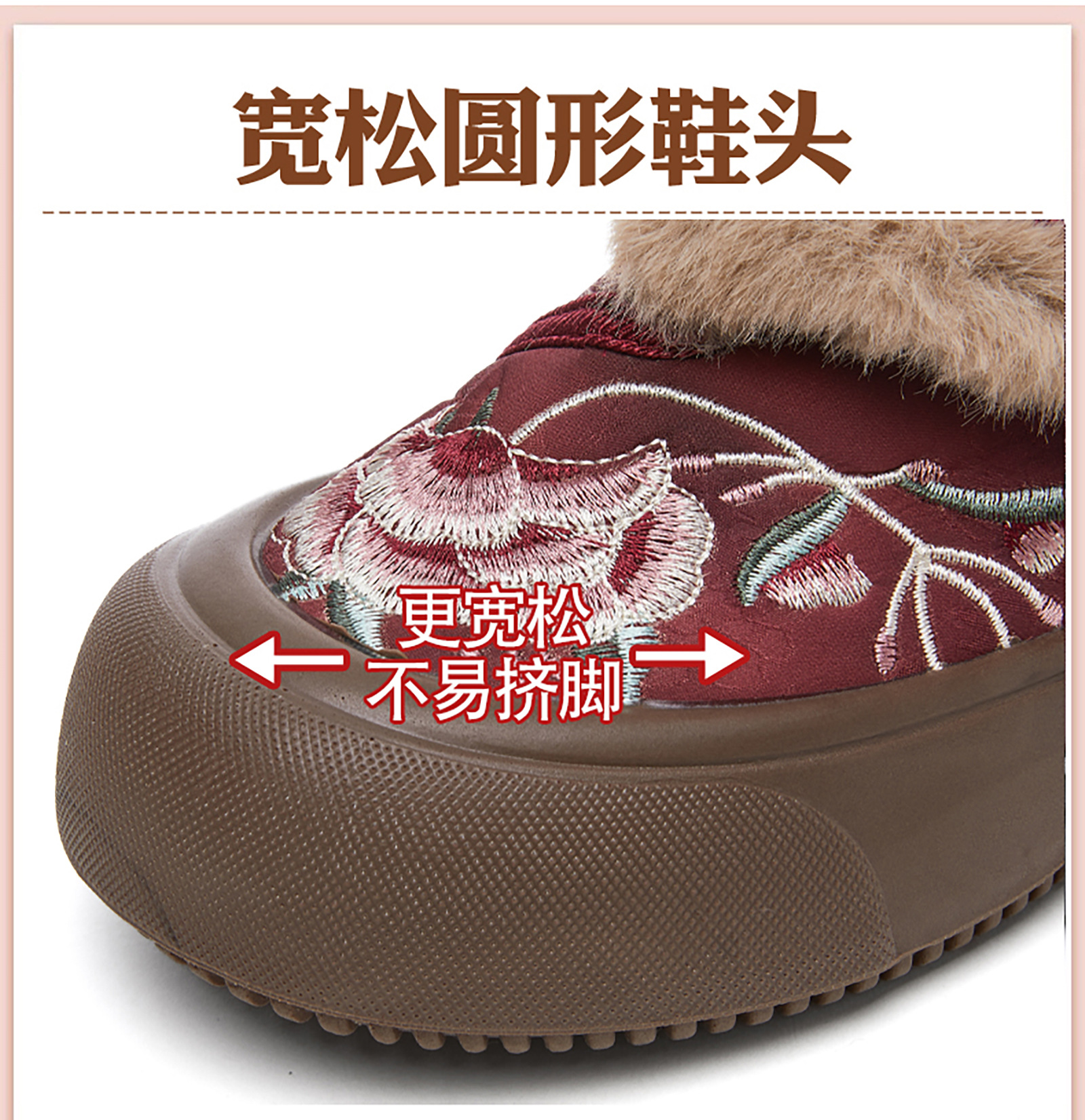 冬季老北京布鞋绣花鞋防滑软底毛毛鞋舒适保暖新中式汉服女棉鞋