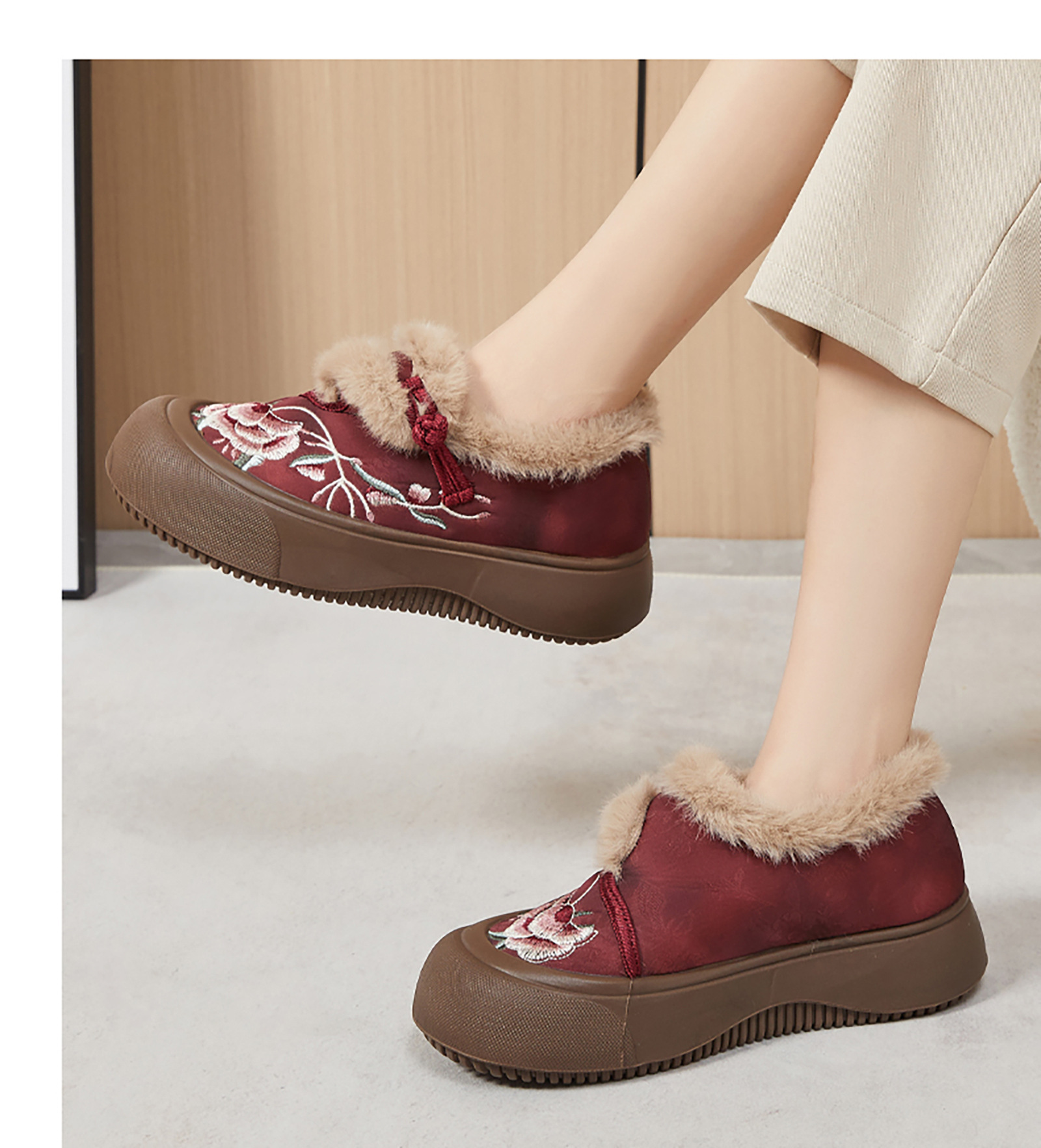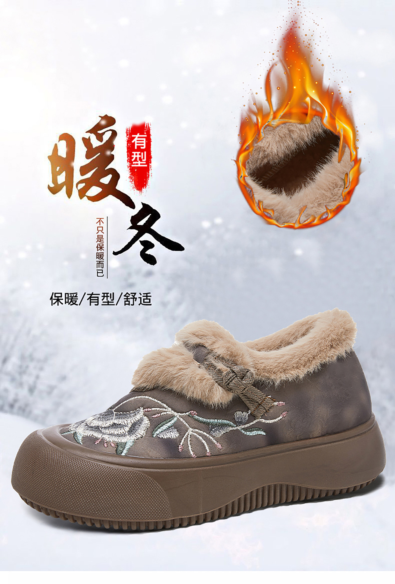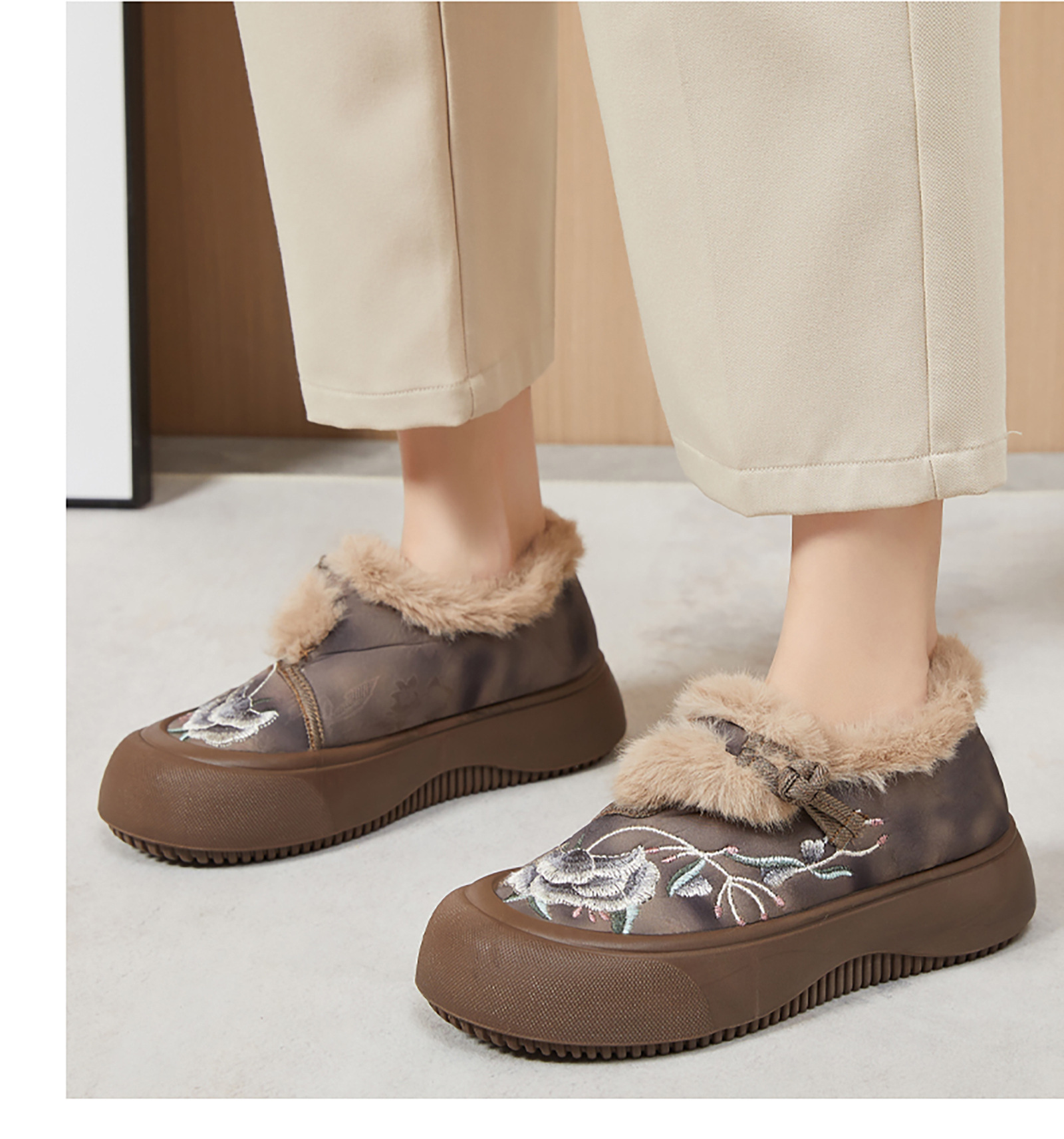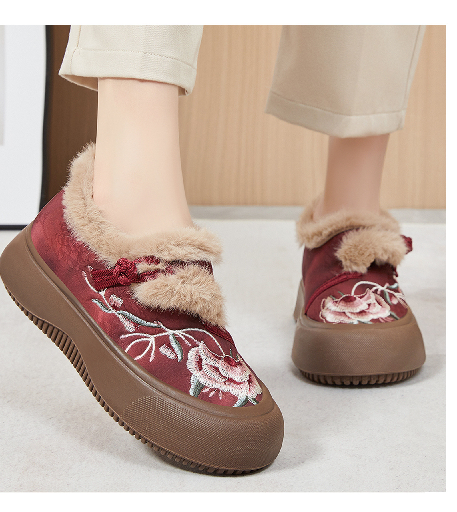冬季老北京布鞋绣花鞋防滑软底毛毛鞋舒适保暖新中式汉服女棉鞋
