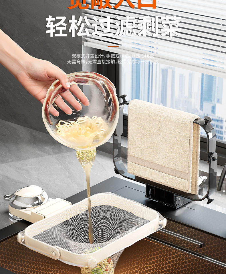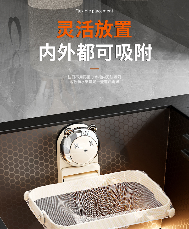小熊吸盘水槽沥水架厨房免打孔剩菜过滤网支架可折叠水槽架收纳网