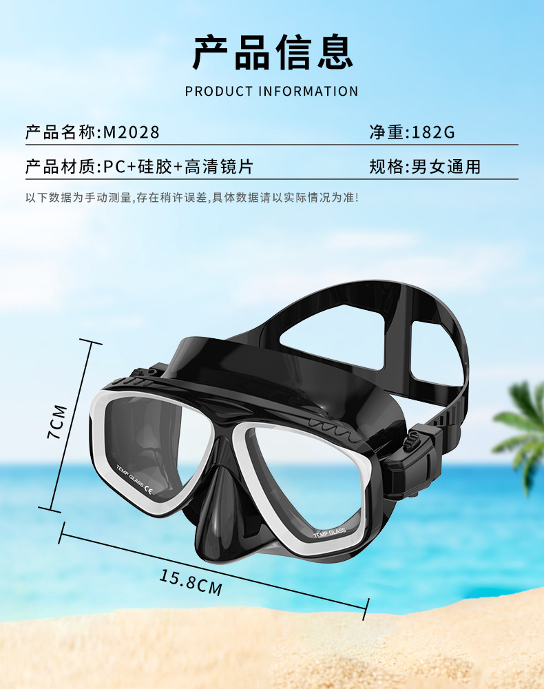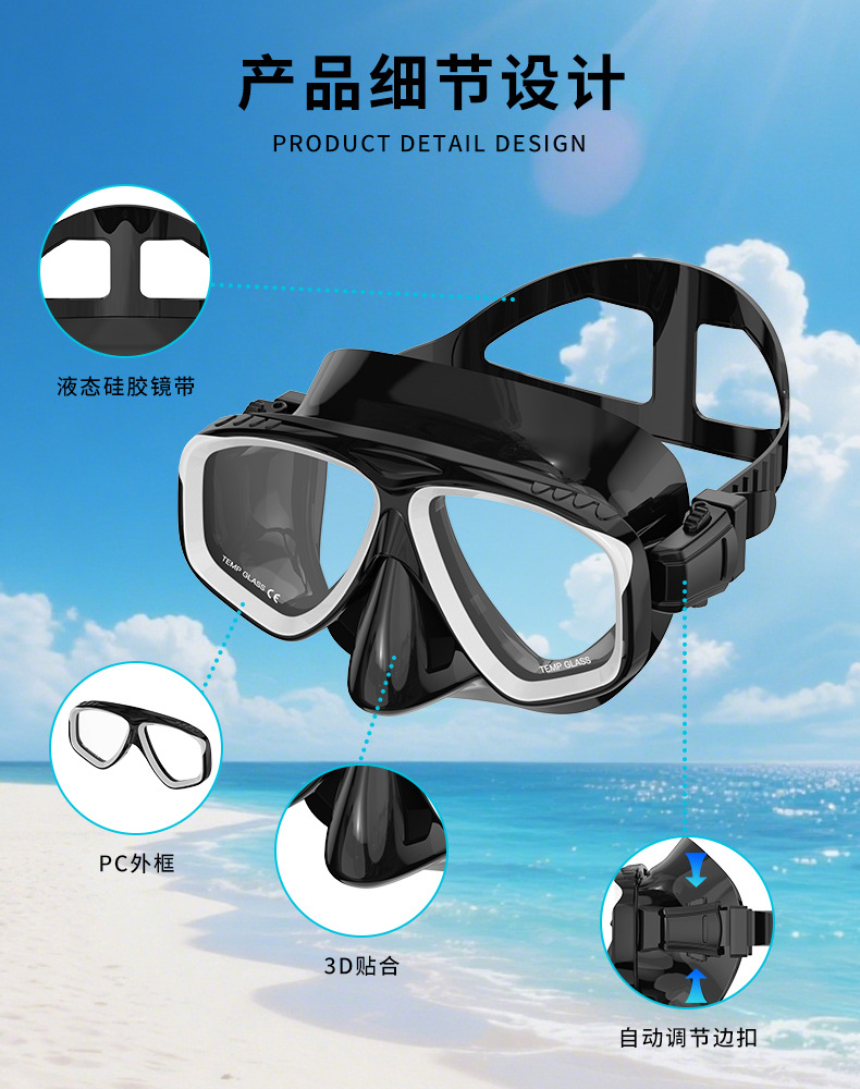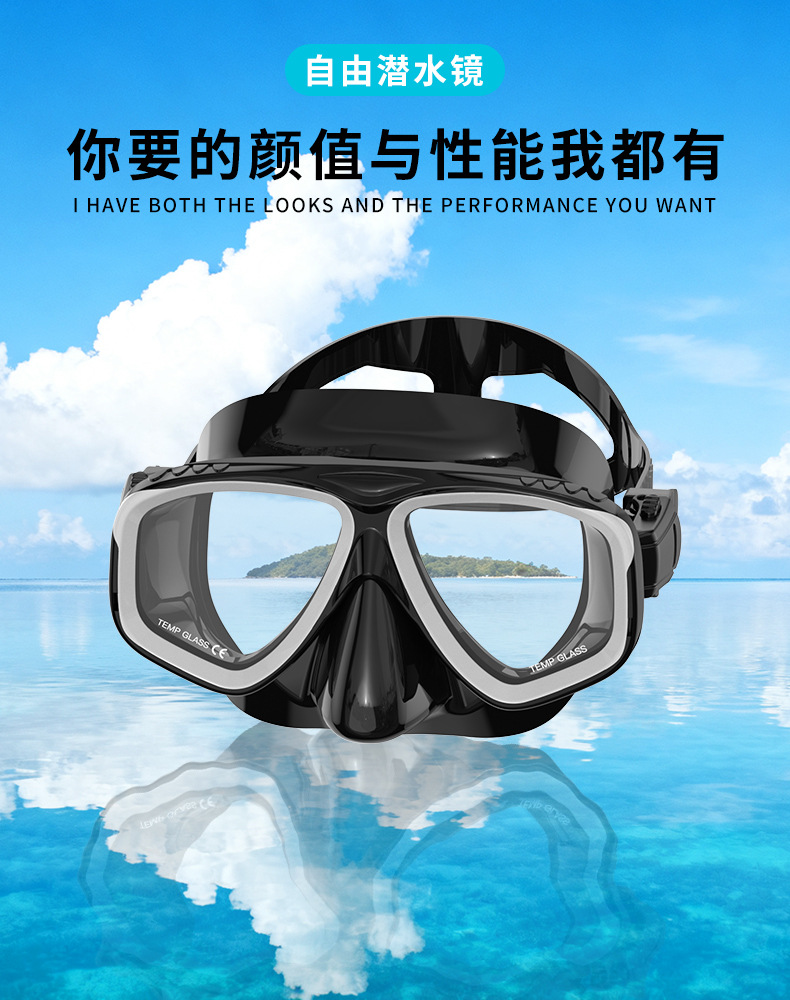 跨境热销潜水镜成人游泳眼镜护目镜硅胶潜水面罩可做近视游泳眼镜
