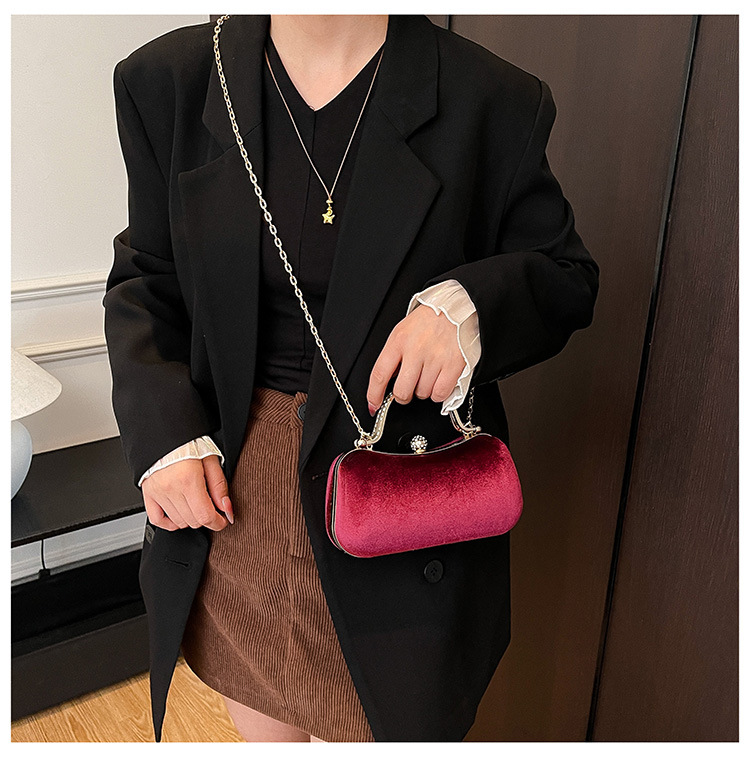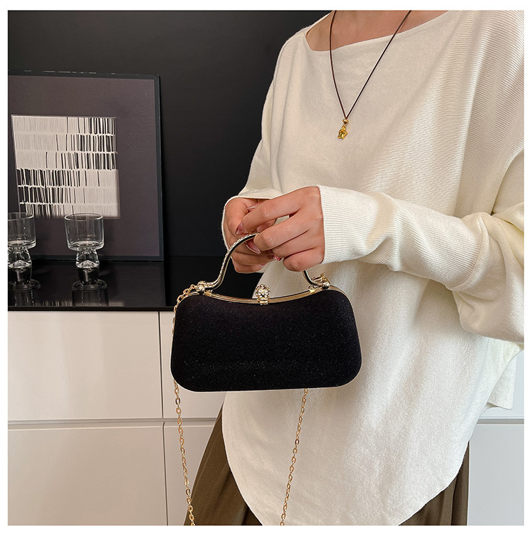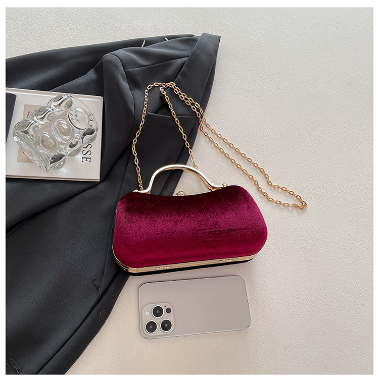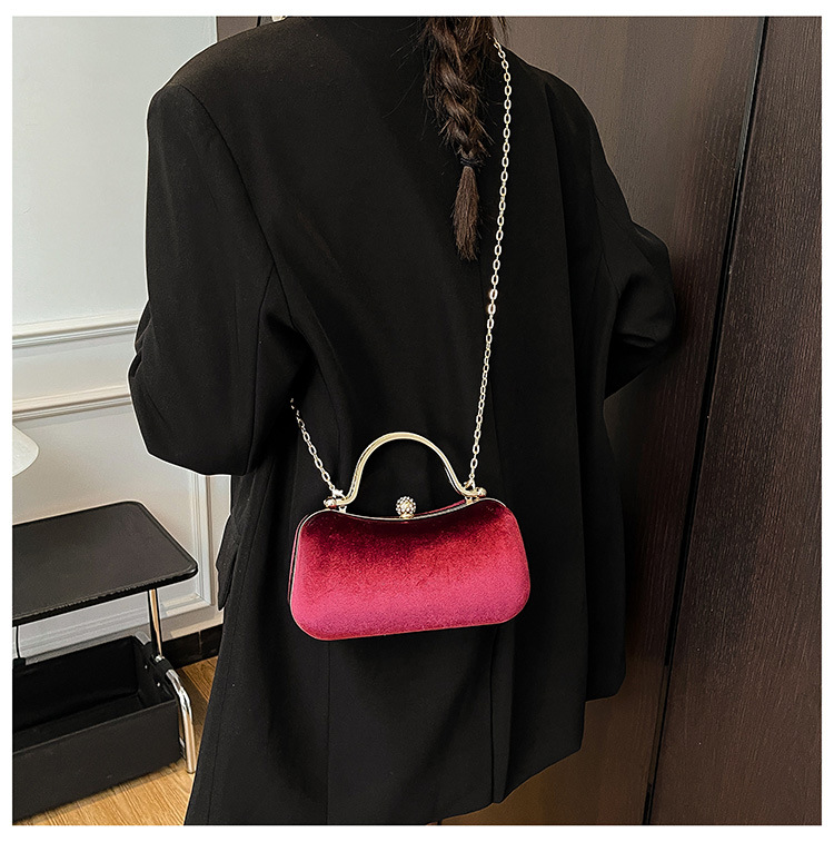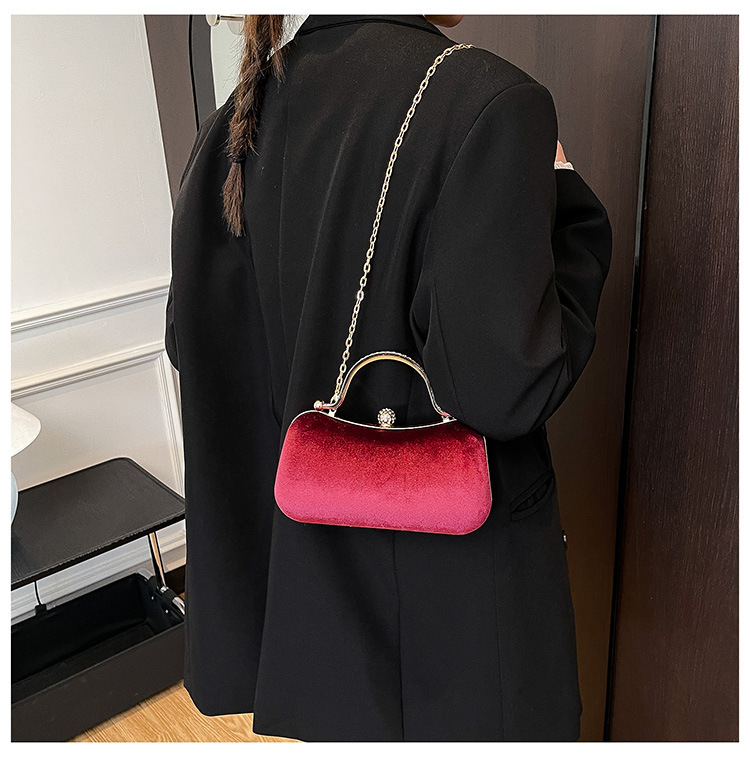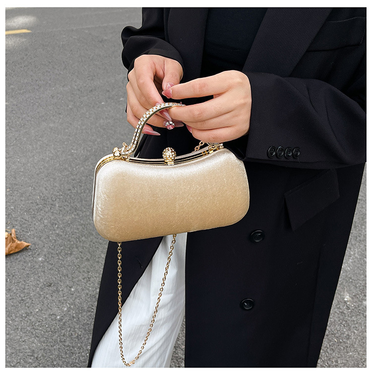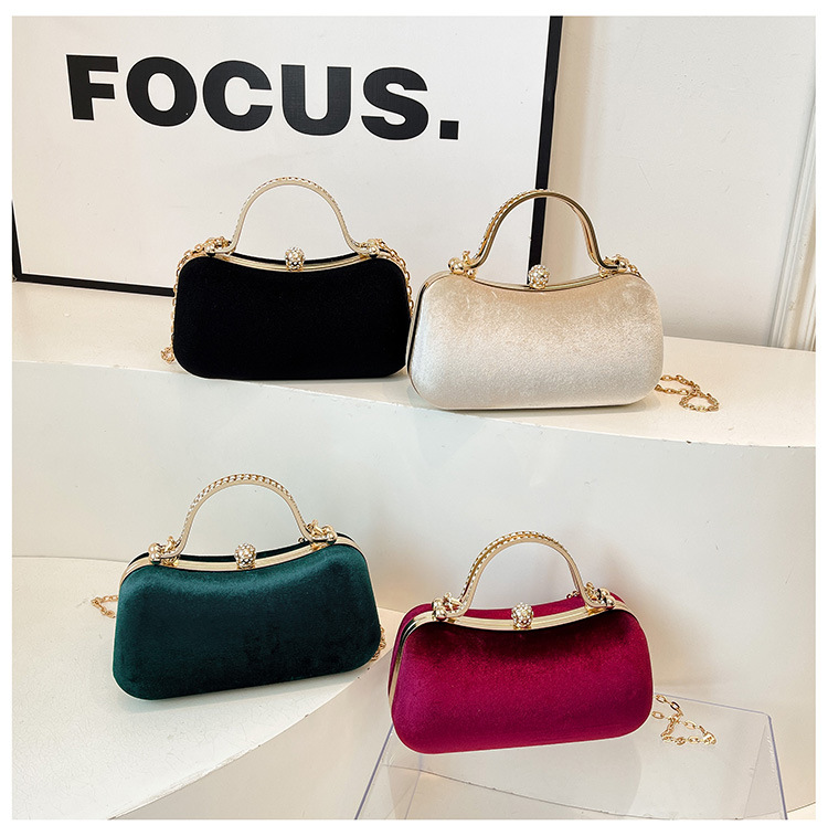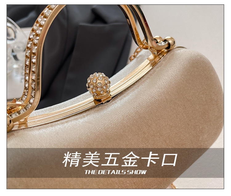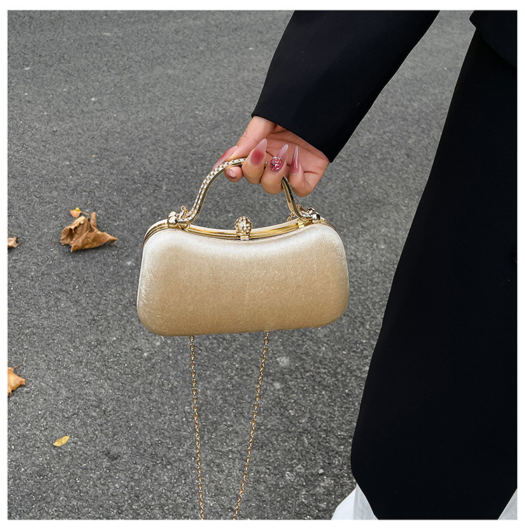 复古丝绒镶钻手拿包2025秋冬新款优雅礼服旗袍包绒面链条斜挎包