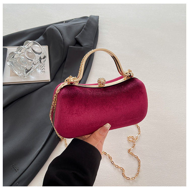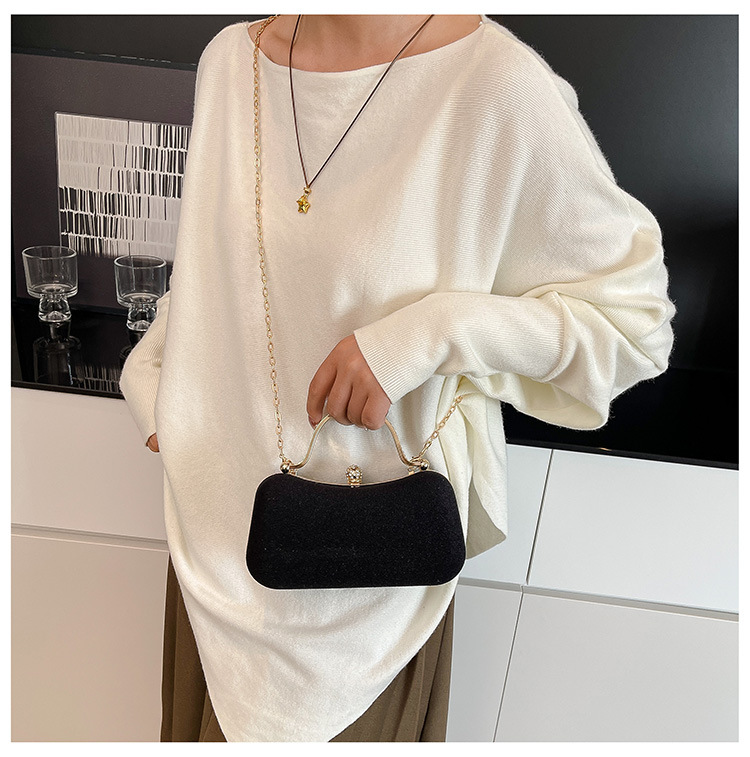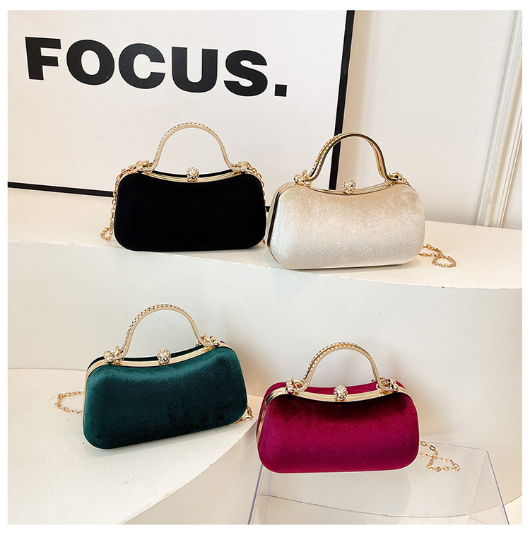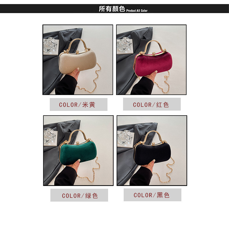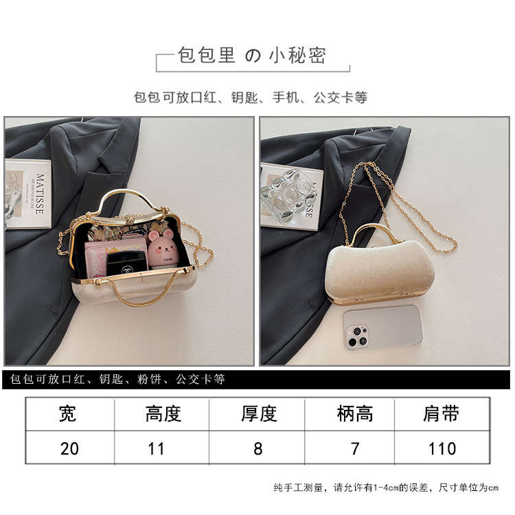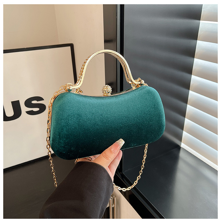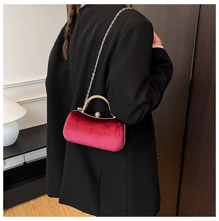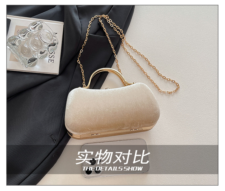 复古丝绒镶钻手拿包2025秋冬新款优雅礼服旗袍包绒面链条斜挎包