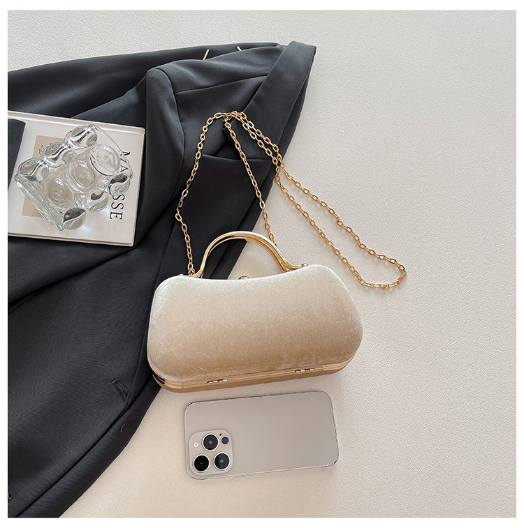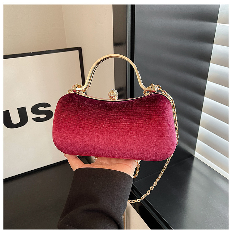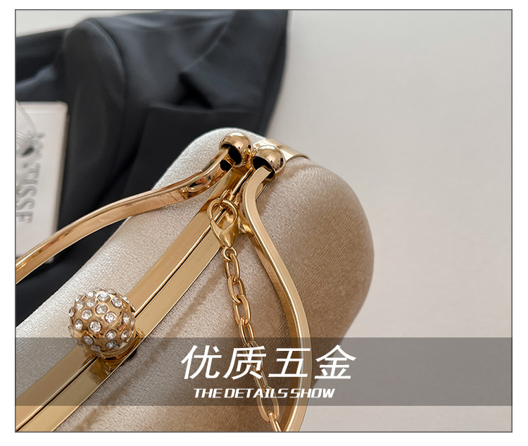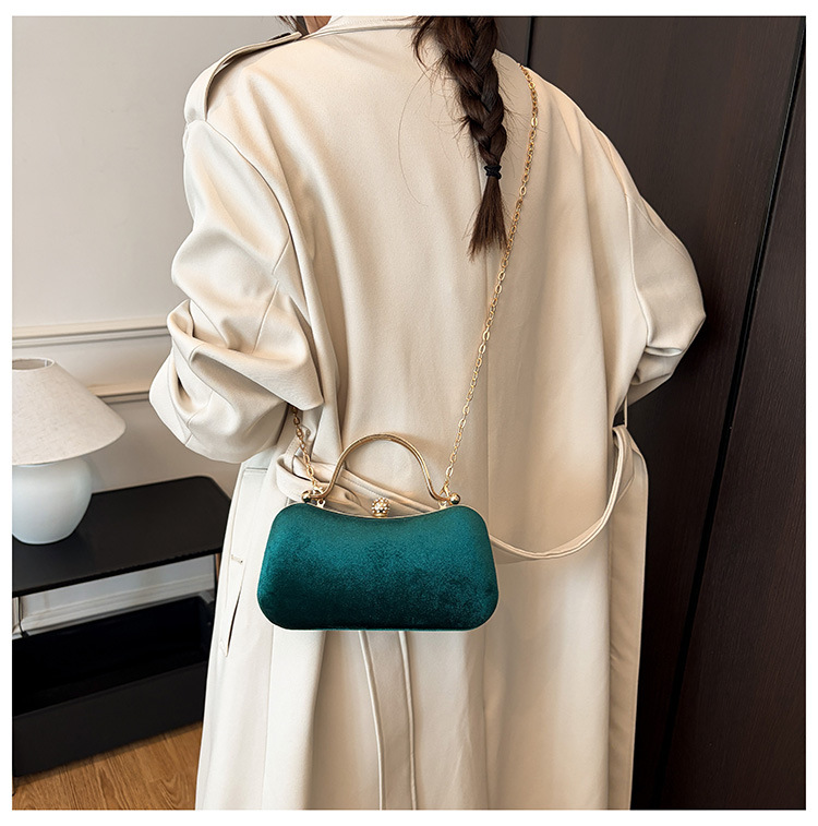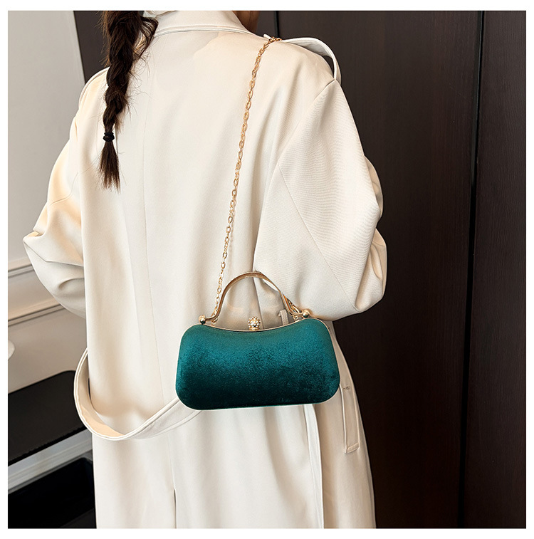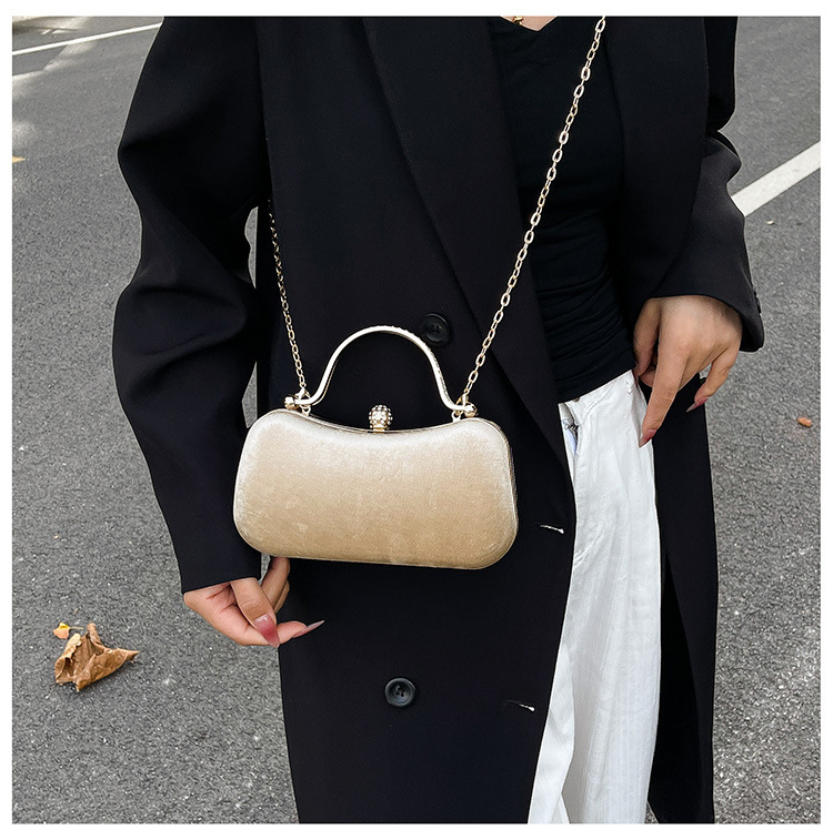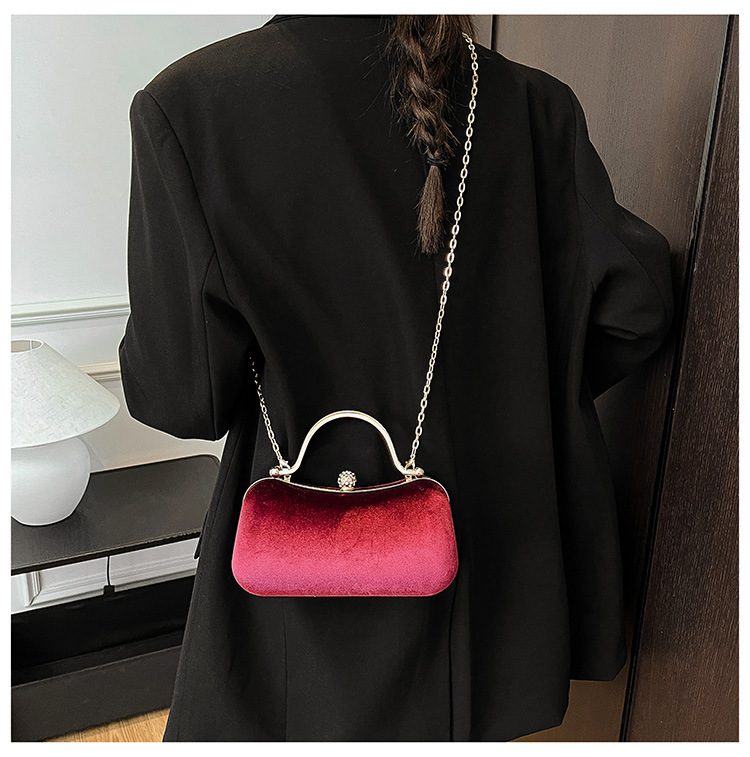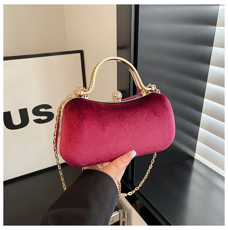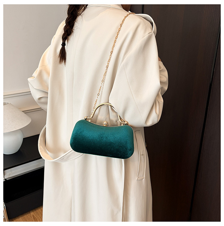 复古丝绒镶钻手拿包2025秋冬新款优雅礼服旗袍包绒面链条斜挎包